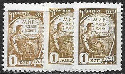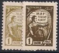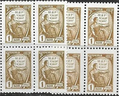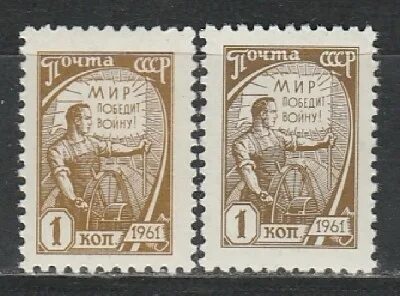 СССР 1961 год. Разновидность - разный тон марок. Стандарт 1 коп.