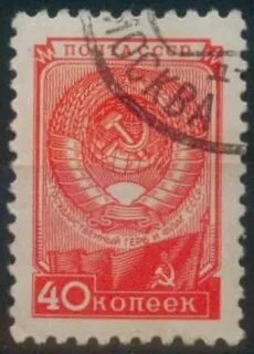 1957г. Государственный герб и флаг СССР, стандартная почтовая марка СССР
