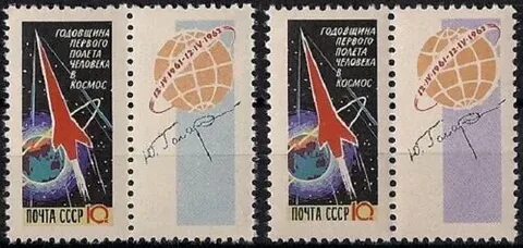 1962 год,Восток,Гагарин,Годовщина полёта,Купон сереневый,Почтовые марки СССР,Космос,Филателия,Поле слева