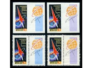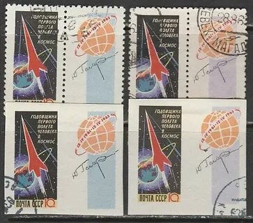 СССР 1962 год. Годовщина первого полёта человека в космос, 4 гашёные марки с купонами