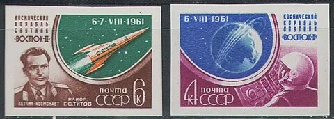 Космический полет Г. С. Титова на корабле ВОСТОК-2, серия 2 марки, СССР 1961 г.
