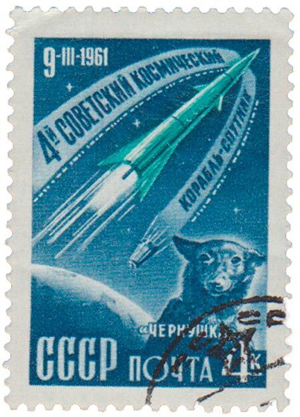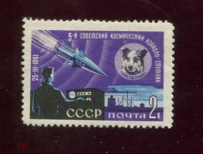 Марка. Собака в космосе Звездочка 1961 г. СССР (М16)15536716