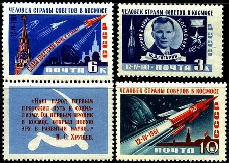 Почтовые марки СССР,чистые марки,Филателия,советы,CCCP,чистая,1961,1961г,1961 год,космос,космонавтика,станция,Гагарин,личности,Восток,Ракета,ракета,известные люди,первый полет человека в космос