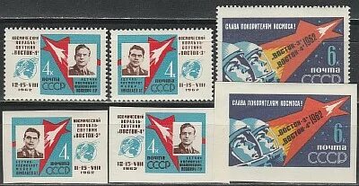 СССР 1962 год, Групповой Полет Николаева и Поповича, 6 марок. (3 м. зуб. и 3 м. без зуб.)