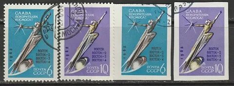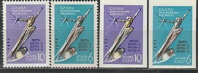 СССР 1962 год, Слава Покорителям Космоса, серия 4 марки ( 2 м. зуб. и 2 м. без зуб.)