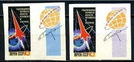 Годовщина первого полета человека в космос. серия 2 марки без перф., СССР 1962 г.
