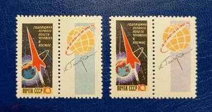 Годовщина первого полета человека в космос. серия 2 марки, СССР 1962 г.