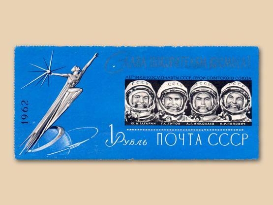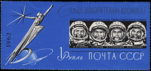 СССР 1962 год. Слава покорителям космоса! 2 блока. наклейки