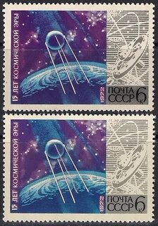СССР 1972 год. 15 лет космической эры. Первый искусственный спутник Земли. Разновидность - разный цвет