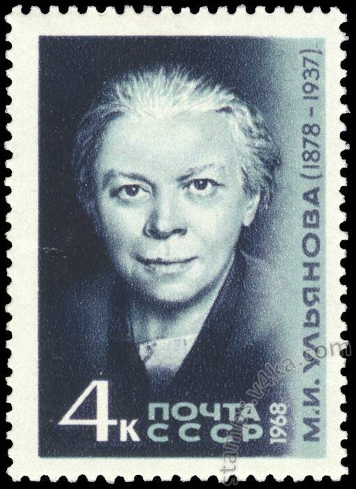 М.И. Ульянова (1878-1937). Почтовая марка СССР 1968 года. Стоковая иллюстрация № 6479235, иллюстратор Щеголева Ольга / Фотобанк