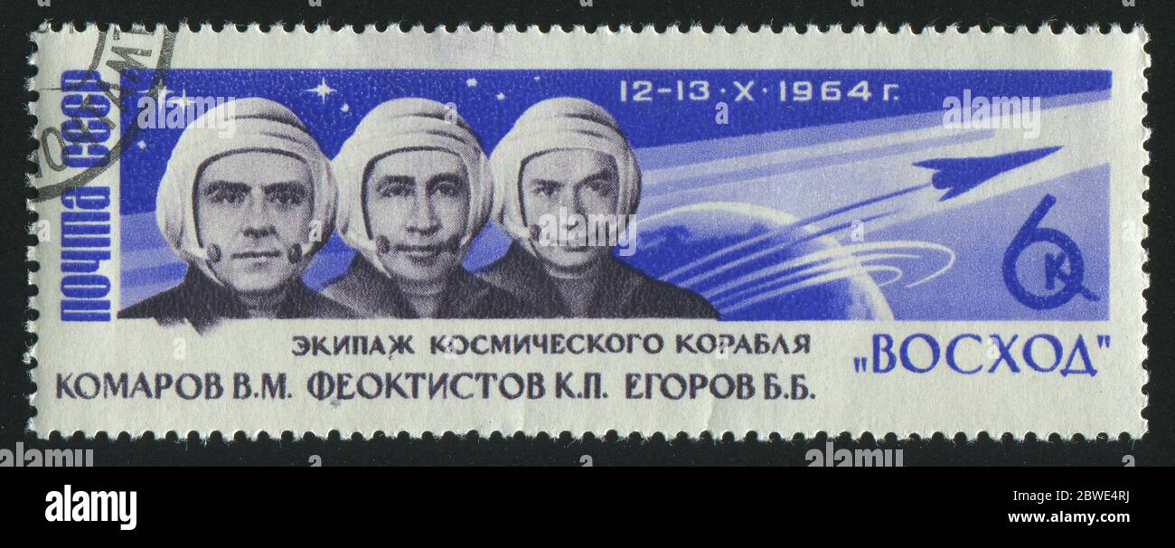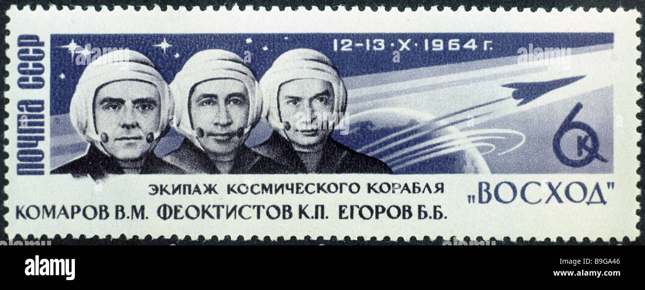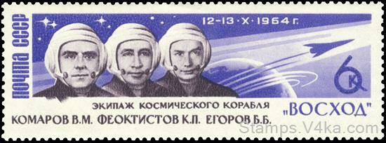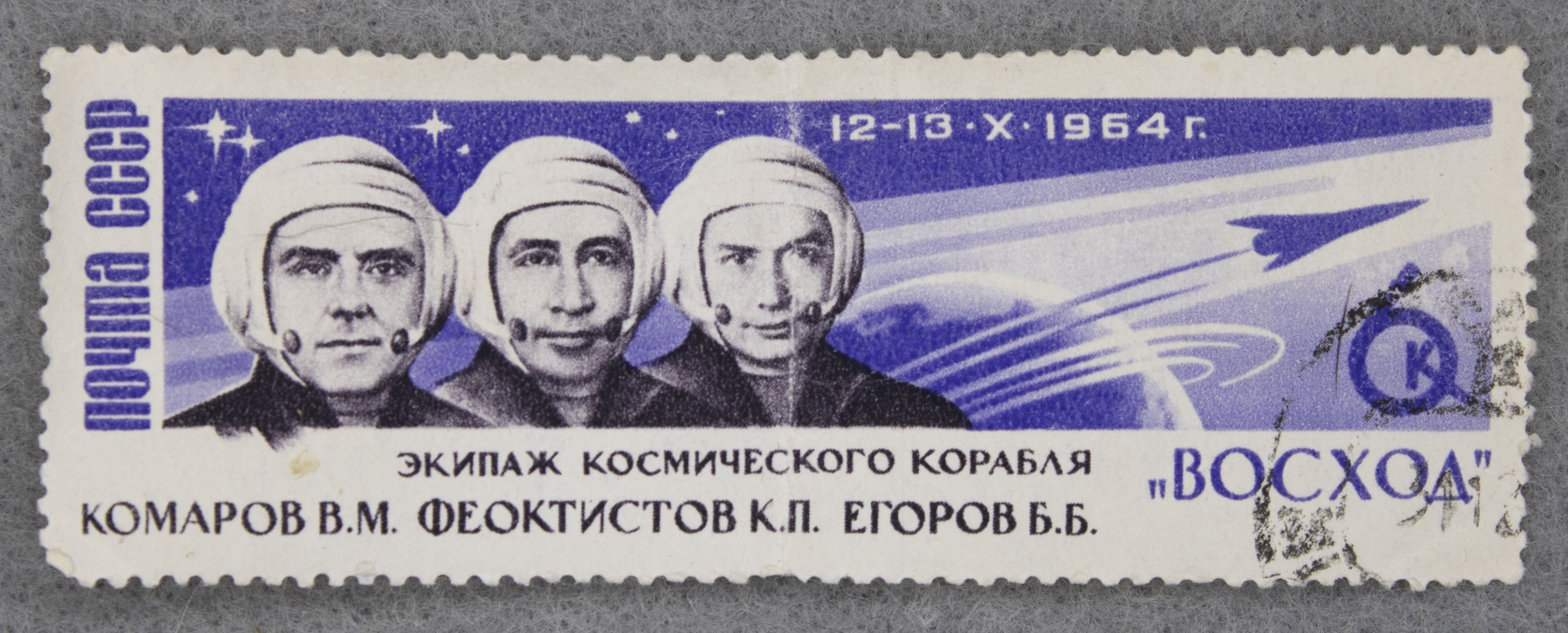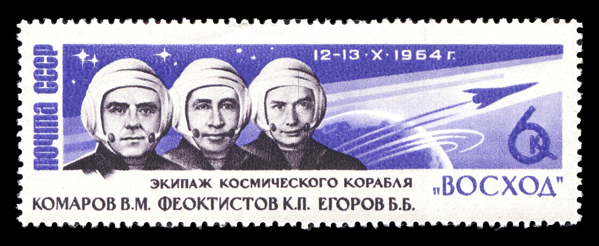File:The Soviet Union 1964 CPA 3113 stamp (3-men Space Flight of Komarov, Yegorov and Feoktistov. The three cosmonauts).jpg - Wi
