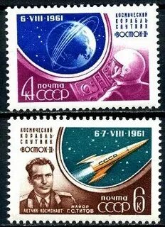Космический полет Г. С. Титова на корабле ВОСТОК-2, серия 2 марки, СССР 1961 г.