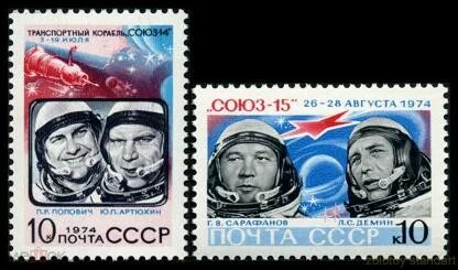 СССР 1974. 4402-4403. Полёт космических кораблей "Союз-14" и "Союз-15".**