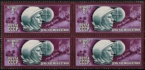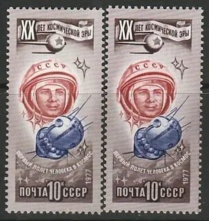 СССР 1977 год. Первый в мире космический полёт. Разновидность - разный оттенок, 2 марки (4698)