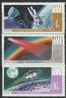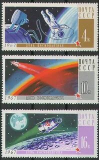 СССР 1967 год, День Космонавтики, серия 3 марки.