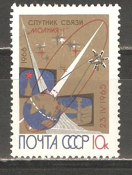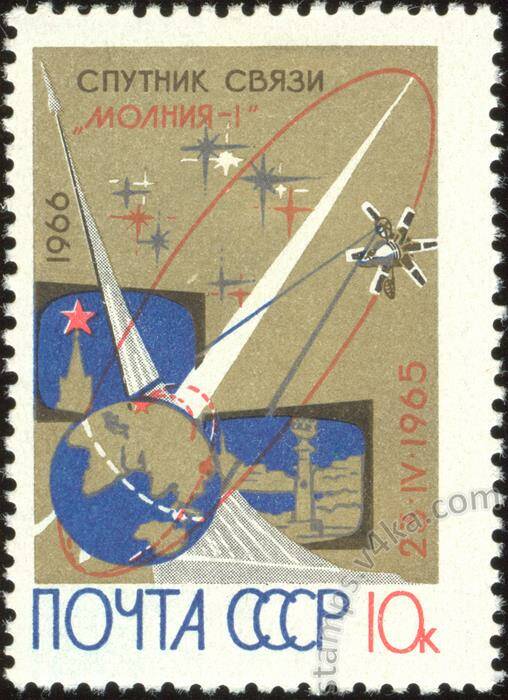 1966 Sc 3258 First Soviet Telecommunications Satellite "Molniya-1" Scott 3195 for sale at Russian Philately