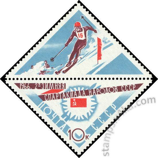 1966. II зимняя Спартакиада народов СССР. Горнолыжник. 10 к.