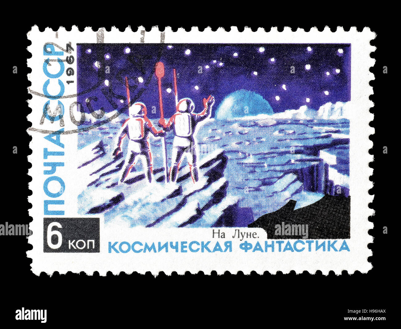 «на луне. восходит земля.» почтовая марка ссср, 1967 год