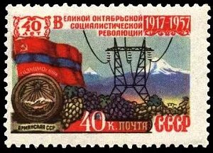 Негашёная марка 1957 года выпуска, из серии - 40 лет Октябрю(Республики), номинал марки - 40 копеек - Грузинская ССР.