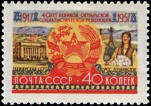 1957. 40 лет Октябрьской социалистической революции. Киргизская ССР. 40 к.