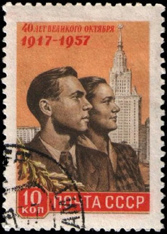1957-109) Марка СССР "Юноша и девушка" Перф греб 12:12? Октябрьская революция. 40 лет III ? AliExpress