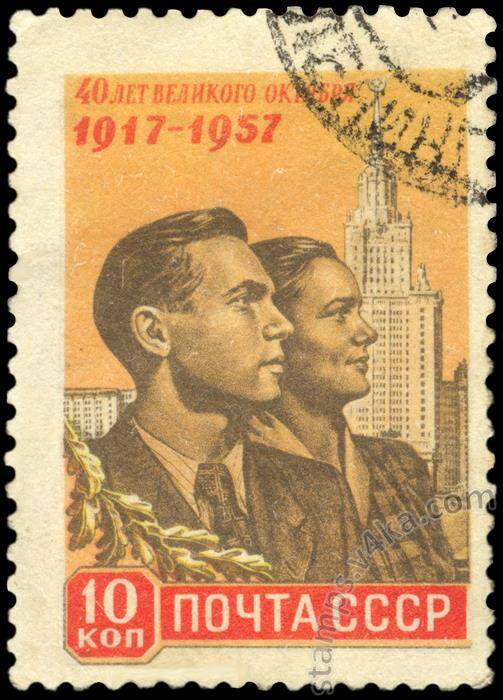 1957-109) Марка СССР "Юноша и девушка" Перф греб 12:12? Октябрьская революция. 40 лет II ? AliExpress