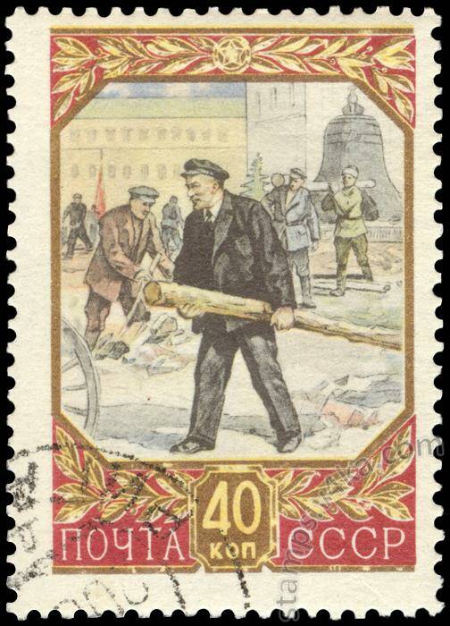 ленин с бревном на субботнике
