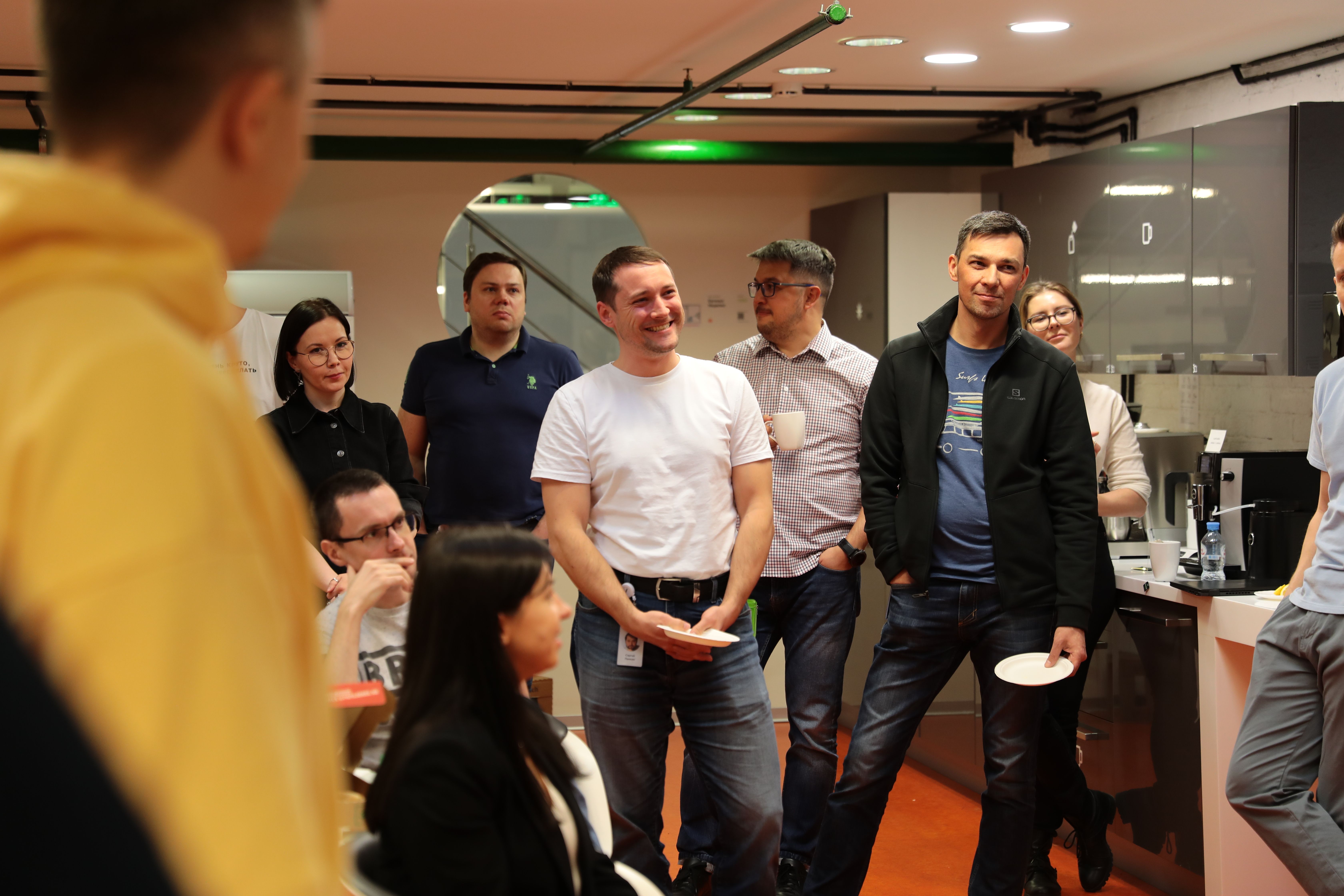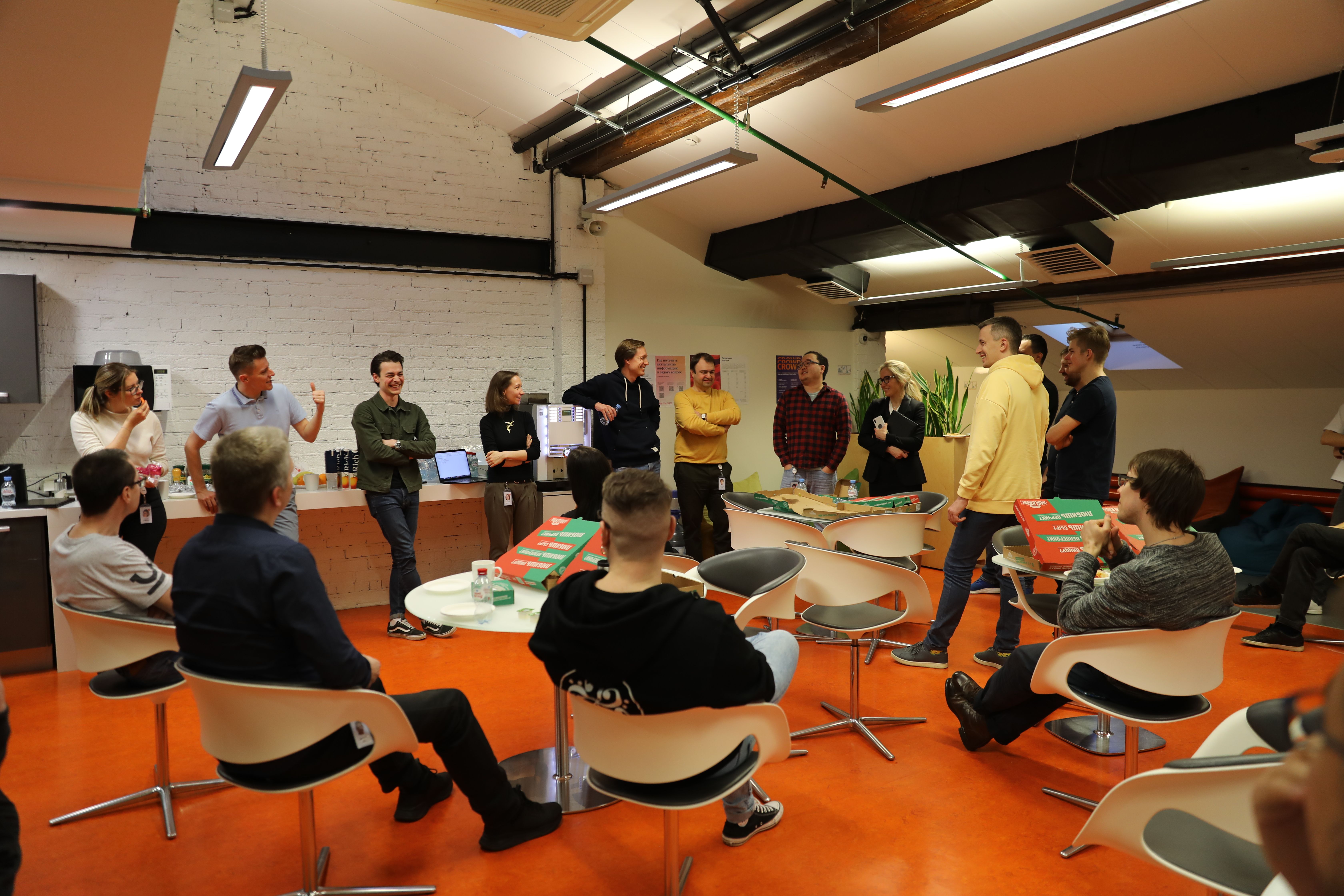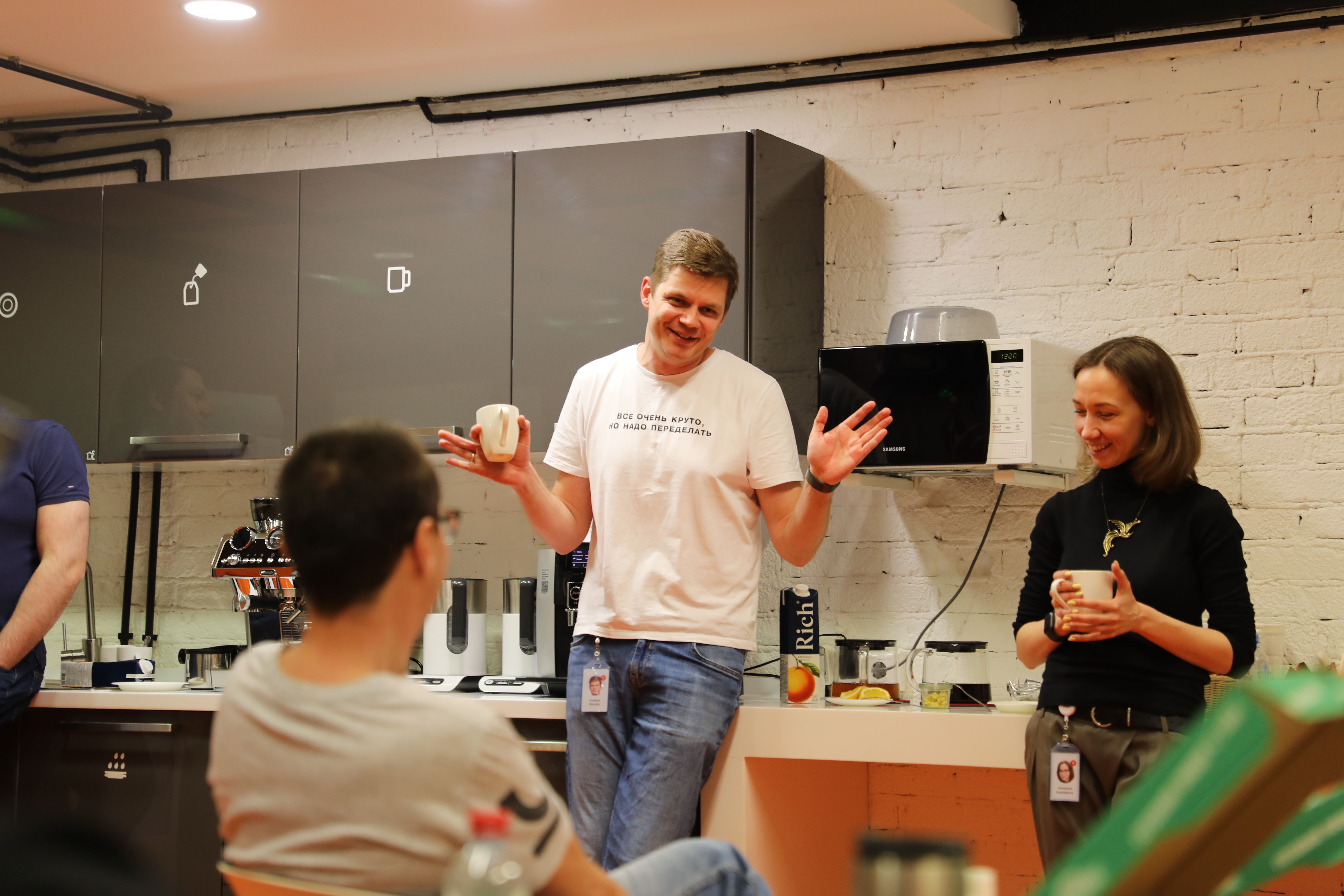 Мы устраиваем мероприятие раз в полтора-два месяца. На встречу приходят все, кто вышел к нам за это время: и те, кто в команде уже несколько недель, и те, кто начал работать пару дней назад. Это удобно: можно послушать истории и вопросы коллег, которые уже успели немного освоиться на новом месте.