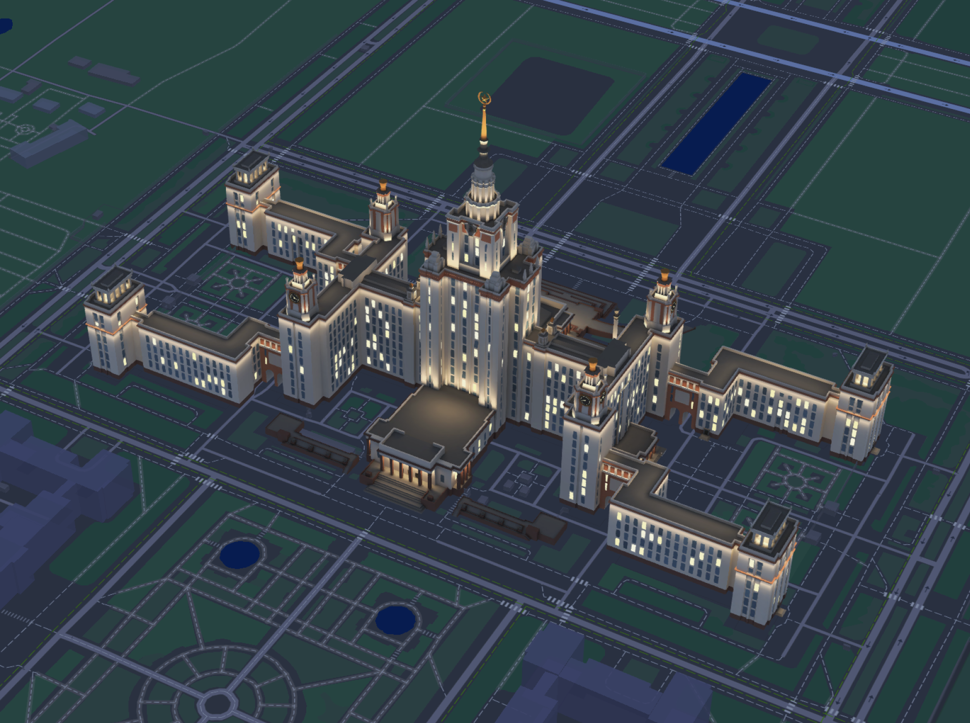 Возможность просмотра 3D-моделей главных достопримечательностей в дневном или ночном оформлении