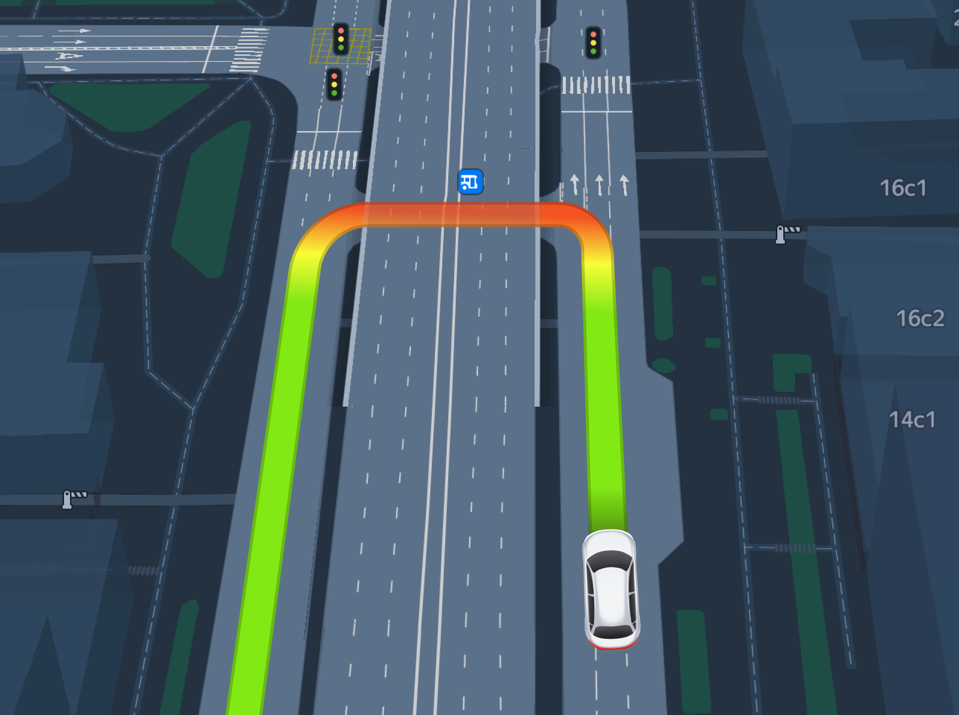 Возможность просмотра HD-карты с детализированной дорожной разметкой, парковками и островками безопасности