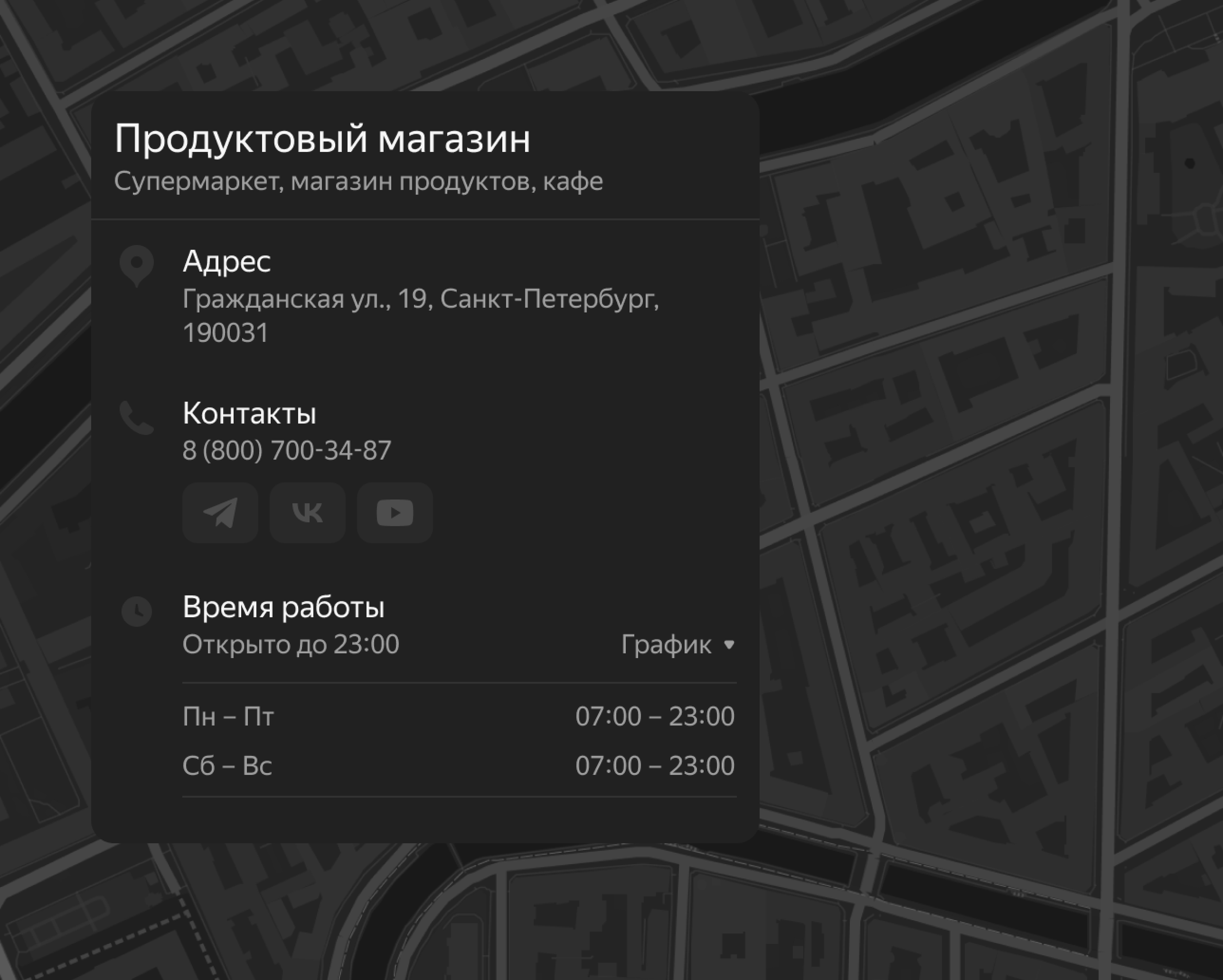 С ним вы получите доступ к базе Справочника Яндекс Карт и сможете отфильтровать нужное по расположению и услугам. Например, найти все кофейни в определённом районе.