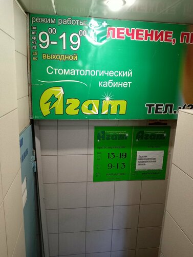 {"hain0":{"state":{"headerProps":{"form":{"action":"/medicine/clinic/agat_1032037237","searchLabel":"Найти","logo":{"href":"//ya.ru","size":44}},"actions":{},"user":{"loggedIn":false,"ariaLabel":"Меню","plus":false,"birthdayHat":false,"child":false,"dialogProps":{"host":"yandex.ru","lang":"ru","project":"medicine","queryParams":{"exp_flags":"skin","preset":"oceania","utm_source":"medicine-app"},"retpath":"https%3A%2F%2Fyandex.ru%2Fmedicine%2Fclinic%2Fagat_1032037237%3Fgeov_results%3D1%26lr%3D213%26oid%3Db%253A1032037237%26text%3D%25D0%25BA%25D0%25BB%25D0%25B8%25D0%25BD%25D0%25B8%25D0%25BA%25D0%25B0%26ncrnd%3D33115","tld":"ru","platform":"desktop"},"loginUrl":"https://passport.yandex.ru/auth?retpath=%2F&origin=serp_desktop_auth_new","loginText":"Войти"},"navigation":{"tabs":[{"id":"search","label":"Поиск","url":"//yandex.ru/search","params":{"text":"[$query]","site":"[$site]","source":"tabbar"}},{"id":"search_neuro","label":"Алиса","url":"//yandex.ru/search","params":{"text":"[$query]","site":"[$site]","source":"tabbar","promo":"force_neuro"}},{"id":"medicine","label":"Медицина","url":"//yandex.ru/medicine","params":{"lr":"[$lr]","from":"tabbar"},"target":"_self"},{"id":"images","label":"Картинки","url":"//yandex.ru/images/search","params":{"text":"[$query]","site":"[$site]","noreask":"[$noreask]","nomisspell":"[$nomisspell]","parent-reqid":"[$reqid]","from":"tabbar"}},{"id":"video","label":"Видео","url":"//yandex.ru/video/search","params":{"text":"[$query]","site":"[$site]","noreask":"[$noreask]","parent-reqid":"[$reqid]","from":"tabbar"}},{"id":"maps","label":"Карты","url":"//yandex.ru/maps","params":{"text":"[$query]","source":"serp_navig"}},{"id":"shopping","label":"Товары","url":"//yandex.ru/products","params":{"lr":"[$lr]","from":"tabbar"}},{"id":"finance","label":"Финансы","url":"//yandex.ru/finance","params":{"lr":"[$lr]","from":"tabbar"}},{"id":"realty","label":"Квартиры","url":"//yandex.ru/realty","params":{"lr":"[$lr]","from":"tabbar"}},{"id":"translate","label":"Переводчик","url":"//translate.yandex.ru","params":{"text":"[$query]","from":"tabbar"}},{"id":"all","label":"Все","url":"//yandex.ru/all","params":{"text":"[$query]","from":"tabbar"}}],"selectedTabId":"medicine"},"context":{"query":"Агат","reqid":"1771474329963445-2125036784582353924-balancer-l7leveler-kubr-yp-klg-246-BAL","lr":"213","aliceDeeplink":"{\"text\":\"Агат\"}","counters":{"type":"b","data":{"$header":"hainz000","logo":"hainz001","advanced-search":"hainz002","login":"hainz004","usermenu":"hainz005","market-cart":"hainz007","more-button":"hainz008","cbir":"hainz009","clear":"hainz00a","submit":"hainz00b","alice":"hainz00c","favorites":"hainz00d","$navigation":"hainz00e","item":"hainz01l","tab-search":"hainz012","tab-search_neuro":"hainz014","tab-medicine":"hainz016","tab-images":"hainz018","tab-video":"hainz01a","tab-maps":"hainz01c","tab-shopping":"hainz01e","tab-finance":"hainz01g","tab-realty":"hainz01i","tab-translate":"hainz01k","tab-all":"hainz01m"}}},"loggedIn":false,"mix":{"outerContainer":[]},"suggestUrl":"/medicine/suggest","suggestPlaceholder":"Найти врача, клинику, услугу","suggestParams":{}},"baobab":{"parentNode":{"context":{"genInfo":{"prefix":"hainw01-0-1"},"ui":"desktop","service":"medicine","fast":{"name":"unisearch/medicine","subtype":"header"}}}}},"type":"unisearch/medicine","subtype":"header"},"hain1":{"state":{"headerProps":{"title":"Агат","titleSize":"xl","schedule":{"title":"Открыто до 18:00","days":{"mon":{"intervals":[{"from":"09:00","to":"18:00"}]},"tue":{"intervals":[{"from":"09:00","to":"18:00"}]},"wed":{"intervals":[{"from":"09:00","to":"18:00"}]},"thu":{"intervals":[{"from":"09:00","to":"18:00"}],"current":true},"fri":{"intervals":[{"from":"09:00","to":"18:00"}]},"sat":{},"sun":{}},"historySyncId":"org-1032037237-schedule-0"},"siteMetrika":{"type":"reach-goal","metrikaCounterId":"63993043","objectId":"1032037237","objectTitle":"Агат","event":"site","goal":"site"},"blueTitle":true,"reviewsCount":24,"reviewsViewerId":"one-org-modal-card-reviews-1032037237","profileOrgLink":"https://yandex.ru/profile/1032037237?lang=ru","rating":{"value":4.2,"base":5,"decimalSeparator":","},"category":"Стоматологическая клиника"},"tabsProps":{"initialTab":"about","aboutTabProps":{"id":"about","title":"Главное","aboutContentProps":{"galleryProps":{"oid":"1032037237","map":{"height":158,"width":158,"assetId":"ua_34_3507104032","url":"https://yandex.ru/profile/1032037237?lang=ru&no-distribution=1&view-state=mini&source=wizbiz_new_map_single"},"height":158,"isInsidePopup":false,"context":{"type":0,"params":{"tabName":"photo"}},"intent":{"type":2,"params":{"oid":"1032037237","tabName":"photo","subtype":"company"}},"photoTiles":{"items":[{"image":"https://avatars.mds.yandex.net/get-altay/4324851/2a0000017759a6486d3c016e6c83e35138d9/L","tagId":"All","name":"Все фото","count":"11","width":281,"height":158,"logNodeAttrs":{"action":"open_photo"}},{"image":"https://avatars.mds.yandex.net/get-altay/1651981/2a0000016f743736caeeb46715acd8f80e74/L","tagId":"Exterior","name":"Снаружи","count":"6","width":211,"height":158,"logNodeAttrs":{"action":"open_photo"}},{"image":"https://avatars.mds.yandex.net/get-altay/4961567/2a0000019021ad0c8159977efc8d963b2128/L","tagId":"Enter","name":"Вход","count":"1","width":130,"height":158,"logNodeAttrs":{"action":"open_photo"}}],"restItems":[{"image":"https://avatars.mds.yandex.net/get-altay/914620/2a000001613ebeebfbff6d43509d2060cfd9/h220","width":211,"height":158,"index":3,"logNodeAttrs":{"action":"open_photo"}},{"image":"https://avatars.mds.yandex.net/get-altay/12595784/2a0000019021a3b700e777bac87fd4a755a2/h220","width":210,"height":158,"index":4,"logNodeAttrs":{"action":"open_photo"}},{"image":"https://avatars.mds.yandex.net/get-altay/927916/2a00000187d212aa4731a273c29ec05078e4/h220","width":211,"he