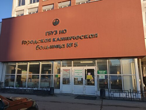 {"3cvc0":{"state":{"headerProps":{"form":{"action":"/medicine/clinic/gorodskaya-klinicheskaya-bolnitsa-5_1188146269","searchLabel":"Найти","logo":{"href":"//ya.ru","size":44}},"actions":{},"user":{"loggedIn":false,"ariaLabel":"Меню","plus":false,"birthdayHat":false,"child":false,"dialogProps":{"host":"yandex.ru","lang":"ru","project":"medicine","queryParams":{"exp_flags":"skin","preset":"oceania","utm_source":"medicine-app"},"retpath":"https%3A%2F%2Fyandex.ru%2Fmedicine%2Fclinic%2Fgorodskaya-klinicheskaya-bolnitsa-5_1188146269%3Fgeov_results%3D1%26lr%3D213%26oid%3Db%253A1188146269%26text%3D%25D0%25BA%25D0%25BB%25D0%25B8%25D0%25BD%25D0%25B8%25D0%25BA%25D0%25B0%26ncrnd%3D33544","tld":"ru","platform":"desktop"},"loginUrl":"https://passport.yandex.ru/auth?retpath=%2F&origin=serp_desktop_auth_new","loginText":"Войти"},"navigation":{"tabs":[{"id":"search","label":"Поиск","url":"//yandex.ru/search","params":{"text":"[$query]","site":"[$site]","source":"tabbar"}},{"id":"search_neuro","label":"Алиса","url":"//yandex.ru/search","params":{"text":"[$query]","site":"[$site]","source":"tabbar","promo":"force_neuro"}},{"id":"medicine","label":"Медицина","url":"//yandex.ru/medicine","params":{"lr":"[$lr]","from":"tabbar"},"target":"_self"},{"id":"images","label":"Картинки","url":"//yandex.ru/images/search","params":{"text":"[$query]","site":"[$site]","noreask":"[$noreask]","nomisspell":"[$nomisspell]","parent-reqid":"[$reqid]","from":"tabbar"}},{"id":"video","label":"Видео","url":"//yandex.ru/video/search","params":{"text":"[$query]","site":"[$site]","noreask":"[$noreask]","parent-reqid":"[$reqid]","from":"tabbar"}},{"id":"maps","label":"Карты","url":"//yandex.ru/maps","params":{"text":"[$query]","source":"serp_navig"}},{"id":"shopping","label":"Товары","url":"//yandex.ru/products","params":{"lr":"[$lr]","from":"tabbar"}},{"id":"finance","label":"Финансы","url":"//yandex.ru/finance","params":{"lr":"[$lr]","from":"tabbar"}},{"id":"realty","label":"Квартиры","url":"//yandex.ru/realty","params":{"lr":"[$lr]","from":"tabbar"}},{"id":"translate","label":"Переводчик","url":"//translate.yandex.ru","params":{"text":"[$query]","from":"tabbar"}},{"id":"all","label":"Все","url":"//yandex.ru/all","params":{"text":"[$query]","from":"tabbar"}}],"selectedTabId":"medicine"},"context":{"query":"Городская клиническая больница № 5","reqid":"1768571875473232-14154489456149888844-balancer-l7leveler-kubr-yp-klg-239-BAL","lr":"213","aliceDeeplink":"{\"text\":\"Городская клиническая больница № 5\"}","counters":{"type":"b","data":{"$header":"3cvcz000","logo":"3cvcz001","advanced-search":"3cvcz002","login":"3cvcz004","usermenu":"3cvcz005","market-cart":"3cvcz007","more-button":"3cvcz008","cbir":"3cvcz009","clear":"3cvcz00a","submit":"3cvcz00b","alice":"3cvcz00c","$navigation":"3cvcz00d","item":"3cvcz01k","tab-search":"3cvcz011","tab-search_neuro":"3cvcz013","tab-medicine":"3cvcz015","tab-images":"3cvcz017","tab-video":"3cvcz019","tab-maps":"3cvcz01b","tab-shopping":"3cvcz01d","tab-finance":"3cvcz01f","tab-realty":"3cvcz01h","tab-translate":"3cvcz01j","tab-all":"3cvcz01l"}}},"loggedIn":false,"mix":{"outerContainer":[]},"suggestUrl":"/medicine/suggest","suggestPlaceholder":"Найти врача, клинику, услугу","suggestParams":{}},"baobab":{"parentNode":{"context":{"genInfo":{"prefix":"3cvcw01-0-1"},"ui":"desktop","service":"medicine","fast":{"name":"unisearch/medicine","subtype":"header"}}}}},"type":"unisearch/medicine","subtype":"header"},"3cvc1":{"state":{"headerProps":{"title":"Городская клиническая больница № 5","titleSize":"xl","url":"http://gkb5-nn.ru/","pathItems":[{"text":"gkb5-nn.ru"}],"schedule":{"title":"Круглосуточно","days":{"mon":{"twentyFourHours":true},"tue":{"twentyFourHours":true},"wed":{"twentyFourHours":true},"thu":{"twentyFourHours":true},"fri":{"twentyFourHours":true,"current":true},"sat":{"twentyFourHours":true},"sun":{"twentyFourHours":true}},"historySyncId":"org-1188146269-schedule-0"},"siteMetrika":{"type":"reach-goal","counterId":"89376097","objectId":"1188146269","objectTitle":"Городская клиническая больница № 5","event":"site","goal":"site"},"blueTitle":true,"reviewsCount":551,"reviewsViewerId":"one-org-modal-card-reviews-1188146269","profileOrgLink":"https://yandex.ru/profile/1188146269?lang=ru","rating":{"value":4.4,"base":5,"decimalSeparator":","},"category":"Больница для взрослых"},"tabsProps":{"initialTab":"about","aboutTabProps":{"id":"about","title":"Главное","aboutContentProps":{"galleryProps":{"oid":"1188146269","map":{"height":158,"width":158,"assetId":"ua_34_2335609423","url":"https://yandex.ru/profile/1188146269?lang=ru&no-distribution=1&view-state=mini&source=wizbiz_new_map_single"},"height":158,"isInsidePopup":false,"context":{"type":0,"params":{"tabName":"photo"}},"intent":{"type":2,"params":{"oid":"1188146269","tabName":"photo","subtype":"company"}},"photoTiles":{"items":[{"image":"https://avatars.mds.yandex.net/get-altay/8133749/2a00000187fad4b52eda0c72f4382ab19b96/L","tagId":"All","name":"Все фото","count":"42","width":211,"height":158,"logNodeAttrs":{"action":"open_photo"}},{"image":"https://avatars.mds.yandex.net/get-altay/248099/2a0000015c20eb0bd0e9854d7fab7653c8d2/L","tagId":"Exterior","name":"Снаружи","count":"16","width":211,"height":158,"logNodeAttrs":{"action":"open_photo"}},{"image":"https://avatars.mds.yandex.net/get-altay/8072647/2a0000018465259a7d2713d002e388974adf/L","tagId":"Interior","name":"Внутри","count":"2","width":130,"height":158,"logNodeAttrs":{"action":"open_photo"}},{"image":"https://avatars.mds.yandex.net/get-altay/11410105/2a00000191b795b586899db4ff5bacddd006/L","tagId":"Enter","name":"Вход","count":"1","width":211,"height":158,"logNodeAttrs":{"action":"open_photo"}},{"image":"http