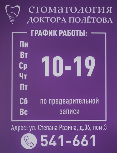 {"df8g0":{"state":{"headerProps":{"form":{"action":"/medicine/clinic/klinika-doktora-polyotova_162417944252","searchLabel":"Найти","logo":{"href":"//ya.ru","size":44}},"actions":{},"user":{"loggedIn":false,"ariaLabel":"Меню","plus":false,"birthdayHat":false,"child":false,"dialogProps":{"host":"yandex.ru","lang":"ru","project":"medicine","queryParams":{"exp_flags":"skin","preset":"oceania","utm_source":"medicine-app"},"retpath":"https%3A%2F%2Fyandex.ru%2Fmedicine%2Fclinic%2Fklinika-doktora-polyotova_162417944252%3Fgeov_results%3D1%26lr%3D213%26oid%3Db%253A162417944252%26text%3D%25D0%25BA%25D0%25BB%25D0%25B8%25D0%25BD%25D0%25B8%25D0%25BA%25D0%25B0%26ncrnd%3D85889","tld":"ru","platform":"desktop"},"loginUrl":"https://passport.yandex.ru/auth?retpath=%2F&origin=serp_desktop_auth_new","loginText":"Войти"},"navigation":{"tabs":[{"id":"search","label":"Поиск","url":"//yandex.ru/search","params":{"text":"[$query]","site":"[$site]","source":"tabbar"}},{"id":"alice_chat","label":"Алиса","url":"//yandex.ru/alice","params":{"reqid":"1773347052493932-8402972947538911121-balancer-l7leveler-kubr-yp-sas-202-BAL","utm_source":"yandex","utm_campaign":"serp_alicetab_chat","utm_medium":"interface","alice_deeplink":"[$aliceDeeplink]","source_query":"[$query]","theme":"serp"},"target":"_self"},{"id":"medicine","label":"Медицина","url":"//yandex.ru/medicine","params":{"lr":"[$lr]","from":"tabbar"},"target":"_self"},{"id":"images","label":"Картинки","url":"//yandex.ru/images/search","params":{"text":"[$query]","site":"[$site]","noreask":"[$noreask]","nomisspell":"[$nomisspell]","parent-reqid":"[$reqid]","from":"tabbar"}},{"id":"video","label":"Видео","url":"//yandex.ru/video/search","params":{"text":"[$query]","site":"[$site]","noreask":"[$noreask]","parent-reqid":"[$reqid]","from":"tabbar"}},{"id":"maps","label":"Карты","url":"//yandex.ru/maps","params":{"text":"[$query]","source":"serp_navig"}},{"id":"shopping","label":"Товары","url":"//yandex.ru/products","params":{"lr":"[$lr]","from":"tabbar"}},{"id":"finance","label":"Финансы","url":"//yandex.ru/finance","params":{"lr":"[$lr]","from":"tabbar"}},{"id":"realty","label":"Квартиры","url":"//yandex.ru/realty","params":{"lr":"[$lr]","from":"tabbar"}},{"id":"translate","label":"Переводчик","url":"//translate.yandex.ru","params":{"text":"[$query]","from":"tabbar"}},{"id":"all","label":"Все","url":"//yandex.ru/all","params":{"text":"[$query]","from":"tabbar"}}],"selectedTabId":"medicine"},"context":{"query":"Клиника доктора Полётова","reqid":"1773347052493932-8402972947538911121-balancer-l7leveler-kubr-yp-sas-202-BAL","lr":"213","aliceDeeplink":"{\"text\":\"Клиника доктора Полётова\"}","counters":{"type":"b","data":{"$header":"df8gz000","logo":"df8gz001","advanced-search":"df8gz002","login":"df8gz004","usermenu":"df8gz005","market-cart":"df8gz007","more-button":"df8gz008","cbir":"df8gz009","clear":"df8gz00a","submit":"df8gz00b","alice":"df8gz00c","favorites":"df8gz00d","$navigation":"df8gz00e","item":"df8gz01l","tab-search":"df8gz012","tab-alice_chat":"df8gz014","tab-medicine":"df8gz016","tab-images":"df8gz018","tab-video":"df8gz01a","tab-maps":"df8gz01c","tab-shopping":"df8gz01e","tab-finance":"df8gz01g","tab-realty":"df8gz01i","tab-translate":"df8gz01k","tab-all":"df8gz01m"}}},"loggedIn":false,"mix":{"outerContainer":[]},"suggestUrl":"/medicine/suggest","suggestPlaceholder":"Найти врача, клинику, услугу","suggestParams":{},"utmSources":{"searchableItem":"upper_suggest_text","submitButton":"upper_search_button","enterKey":"upper_suggest_enter"}},"baobab":{"parentNode":{"context":{"genInfo":{"prefix":"df8gw01-0-1"},"ui":"desktop","service":"medicine","fast":{"name":"unisearch/medicine","subtype":"header"}}}}},"type":"unisearch/medicine","subtype":"header"},"df8g1":{"state":{"headerProps":{"title":"Клиника доктора Полётова","titleSize":"xl","schedule":{"title":"Закрыто до завтра","days":{"mon":{"intervals":[{"from":"10:00","to":"14:30"},{"from":"15:00","to":"19:00"}]},"tue":{"intervals":[{"from":"10:00","to":"14:30"},{"from":"15:00","to":"19:00"}]},"wed":{"intervals":[{"from":"10:00","to":"14:30"},{"from":"15:00","to":"19:00"}]},"thu":{"intervals":[{"from":"10:00","to":"14:30"},{"from":"15:00","to":"19:00"}],"current":true},"fri":{"intervals":[{"from":"10:00","to":"14:30"},{"from":"15:00","to":"19:00"}]},"sat":{"intervals":[{"from":"11:00","to":"15:00"}]},"sun":{"intervals":[{"from":"11:00","to":"15:00"}]}},"historySyncId":"org-162417944252-schedule-0"},"logo":"https://avatars.mds.yandex.net/get-altay/6487610/2a00000183c132c57458c278468a9c3ada25/XS","siteMetrika":{"type":"reach-goal","metrikaCounterId":"59935165","objectId":"162417944252","objectTitle":"Клиника доктора Полётова","event":"site","goal":"site"},"blueTitle":true,"reviewsCount":38,"reviewsViewerId":"one-org-modal-card-reviews-162417944252","profileOrgLink":"https://yandex.ru/profile/162417944252?lang=ru","rating":{"value":4.8,"base":5,"decimalSeparator":","},"category":"Стоматологическая клиника","verifiedTld":"ru"},"tabsProps":{"initialTab":"about","aboutTabProps":{"id":"about","title":"Главное","aboutContentProps":{"galleryProps":{"oid":"162417944252","map":{"height":158,"width":158,"assetId":"ua_34_1554981142","url":"https://yandex.ru/profile/162417944252?lang=ru&no-distribution=1&view-state=mini&source=wizbiz_new_map_single"},"height":158,"isInsidePopup":false,"context":{"type":0,"params":{"tabName":"photo"}},"intent":{"type":2,"params":{"oid":"162417944252","tabName":"photo","subtype":"company"}},"photoTiles":{"items":[{"image":"https://avatars.mds.yandex.net/get-altay/5456749/2a0000017d9e5c7624174819e8e7611605c9/L","tagId":"All","name":"Все фото","count":"21","width":237,"height":158,"logNodeAttrs":{"action":"open_photo"}},{"image":"https://avatars.mds.yan