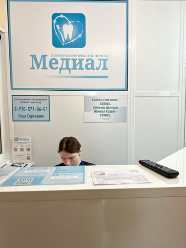 {"l95p0":{"state":{"headerProps":{"form":{"action":"/medicine/clinic/medial_1184506759","searchLabel":"Найти","logo":{"href":"//ya.ru","size":44}},"actions":{},"user":{"loggedIn":false,"ariaLabel":"Меню","plus":false,"birthdayHat":false,"child":false,"dialogProps":{"host":"yandex.ru","lang":"ru","project":"medicine","queryParams":{"exp_flags":"skin","preset":"oceania","utm_source":"medicine-app"},"retpath":"https%3A%2F%2Fyandex.ru%2Fmedicine%2Fclinic%2Fmedial_1184506759%3Fgeov_results%3D1%26lr%3D213%26oid%3Db%253A1184506759%26text%3D%25D0%25BA%25D0%25BB%25D0%25B8%25D0%25BD%25D0%25B8%25D0%25BA%25D0%25B0%26ncrnd%3D40985","tld":"ru","platform":"desktop"},"loginUrl":"https://passport.yandex.ru/auth?retpath=%2F&origin=serp_desktop_auth_new","loginText":"Войти"},"navigation":{"tabs":[{"id":"search","label":"Поиск","url":"//yandex.ru/search","params":{"text":"[$query]","site":"[$site]","source":"tabbar"}},{"id":"search_neuro","label":"Алиса","url":"//yandex.ru/search","params":{"text":"[$query]","site":"[$site]","source":"tabbar","promo":"force_neuro"}},{"id":"medicine","label":"Медицина","url":"//yandex.ru/medicine","params":{"lr":"[$lr]","from":"tabbar"},"target":"_self"},{"id":"images","label":"Картинки","url":"//yandex.ru/images/search","params":{"text":"[$query]","site":"[$site]","noreask":"[$noreask]","nomisspell":"[$nomisspell]","parent-reqid":"[$reqid]","from":"tabbar"}},{"id":"video","label":"Видео","url":"//yandex.ru/video/search","params":{"text":"[$query]","site":"[$site]","noreask":"[$noreask]","parent-reqid":"[$reqid]","from":"tabbar"}},{"id":"maps","label":"Карты","url":"//yandex.ru/maps","params":{"text":"[$query]","source":"serp_navig"}},{"id":"shopping","label":"Товары","url":"//yandex.ru/products","params":{"lr":"[$lr]","from":"tabbar"}},{"id":"finance","label":"Финансы","url":"//yandex.ru/finance","params":{"lr":"[$lr]","from":"tabbar"}},{"id":"realty","label":"Квартиры","url":"//yandex.ru/realty","params":{"lr":"[$lr]","from":"tabbar"}},{"id":"translate","label":"Переводчик","url":"//translate.yandex.ru","params":{"text":"[$query]","from":"tabbar"}},{"id":"all","label":"Все","url":"//yandex.ru/all","params":{"text":"[$query]","from":"tabbar"}}],"selectedTabId":"medicine"},"context":{"query":"Медиал","reqid":"1770975923124497-16118466473358426234-balancer-l7leveler-kubr-yp-vla-79-BAL","lr":"213","aliceDeeplink":"{\"text\":\"Медиал\"}","counters":{"type":"b","data":{"$header":"l95pz000","logo":"l95pz001","advanced-search":"l95pz002","login":"l95pz004","usermenu":"l95pz005","market-cart":"l95pz007","more-button":"l95pz008","cbir":"l95pz009","clear":"l95pz00a","submit":"l95pz00b","alice":"l95pz00c","favorites":"l95pz00d","$navigation":"l95pz00e","item":"l95pz01l","tab-search":"l95pz012","tab-search_neuro":"l95pz014","tab-medicine":"l95pz016","tab-images":"l95pz018","tab-video":"l95pz01a","tab-maps":"l95pz01c","tab-shopping":"l95pz01e","tab-finance":"l95pz01g","tab-realty":"l95pz01i","tab-translate":"l95pz01k","tab-all":"l95pz01m"}}},"loggedIn":false,"mix":{"outerContainer":[]},"suggestUrl":"/medicine/suggest","suggestPlaceholder":"Найти врача, клинику, услугу","suggestParams":{}},"baobab":{"parentNode":{"context":{"genInfo":{"prefix":"l95pw01-0-1"},"ui":"desktop","service":"medicine","fast":{"name":"unisearch/medicine","subtype":"header"}}}}},"type":"unisearch/medicine","subtype":"header"},"l95p1":{"state":{"headerProps":{"title":"Медиал","titleSize":"xl","url":"https://medial-dental.ru/","pathItems":[{"text":"medial-dental.ru"}],"schedule":{"title":"Открыто до 19:00","days":{"mon":{"intervals":[{"from":"09:00","to":"19:00"}]},"tue":{"intervals":[{"from":"09:00","to":"19:00"}]},"wed":{"intervals":[{"from":"09:00","to":"19:00"}]},"thu":{"intervals":[{"from":"09:00","to":"19:00"}]},"fri":{"intervals":[{"from":"09:00","to":"19:00"}],"current":true},"sat":{"intervals":[{"from":"09:00","to":"18:00"}]},"sun":{}},"historySyncId":"org-1184506759-schedule-0"},"logo":"https://avatars.mds.yandex.net/get-altay/2887807/2a000001723b1bcabb8d3fd3b3b4a57f1643/XS","siteMetrika":{"type":"reach-goal","metrikaCounterId":"60528325","objectId":"1184506759","objectTitle":"Медиал","event":"site","goal":"site"},"blueTitle":true,"reviewsCount":63,"reviewsViewerId":"one-org-modal-card-reviews-1184506759","profileOrgLink":"https://yandex.ru/profile/1184506759?lang=ru","rating":{"value":4.5,"base":5,"decimalSeparator":","},"category":"Стоматологическая клиника","verifiedTld":"ru"},"tabsProps":{"initialTab":"about","aboutTabProps":{"id":"about","title":"Главное","aboutContentProps":{"galleryProps":{"oid":"1184506759","map":{"height":158,"width":158,"assetId":"ua_34_3450914327","url":"https://yandex.ru/profile/1184506759?lang=ru&no-distribution=1&view-state=mini&source=wizbiz_new_map_single"},"height":158,"isInsidePopup":false,"context":{"type":0,"params":{"tabName":"photo"}},"intent":{"type":2,"params":{"oid":"1184506759","tabName":"photo","subtype":"company"}},"photoTiles":{"items":[{"image":"https://avatars.mds.yandex.net/get-altay/15434007/2a00000199d3f2b7b74b93b6c02b71312710/L","tagId":"All","name":"Все фото","count":"76","width":161,"height":158,"logNodeAttrs":{"action":"open_photo"}},{"image":"https://avatars.mds.yandex.net/get-altay/16454077/2a0000019a8309cbb52d35b97a8dddae6824/L","tagId":"Exterior","name":"Снаружи","count":"3","width":211,"height":158,"logNodeAttrs":{"action":"open_photo"}},{"image":"https://avatars.mds.yandex.net/get-altay/16323929/2a00000199a95beae2a294cd24e3cab420c4/L","tagId":"Interior","name":"Внутри","count":"26","width":130,"height":158,"logNodeAttrs":{"action":"open_photo"}},{"image":"https://avatars.mds.yandex.net/get-altay/16789805/2a0000019a8866250bb69629456b962e19fa/L","tagId":"Enter","name":"Вход","count":"5","width":211,"height":158,"logNodeAttrs":{"action":"open_photo"}},{"imag