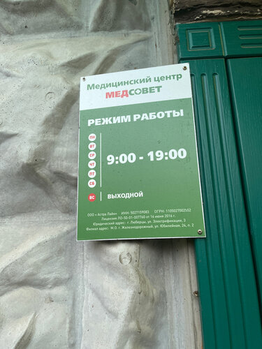{"75600":{"state":{"headerProps":{"form":{"action":"/medicine/clinic/medsovet_1234550695","searchLabel":"Найти","logo":{"href":"//ya.ru","size":44}},"actions":{},"user":{"loggedIn":false,"ariaLabel":"Меню","plus":false,"birthdayHat":false,"child":false,"dialogProps":{"host":"yandex.ru","lang":"ru","project":"medicine","queryParams":{"exp_flags":"skin","preset":"oceania","utm_source":"medicine-app"},"retpath":"https%3A%2F%2Fyandex.ru%2Fmedicine%2Fclinic%2Fmedsovet_1234550695%3Fgeov_results%3D1%26lr%3D213%26oid%3Db%253A1234550695%26text%3D%25D0%25BA%25D0%25BB%25D0%25B8%25D0%25BD%25D0%25B8%25D0%25BA%25D0%25B0%26ncrnd%3D142","tld":"ru","platform":"desktop"},"loginUrl":"https://passport.yandex.ru/auth?retpath=%2F&origin=serp_desktop_auth_new","loginText":"Войти"},"navigation":{"tabs":[{"id":"search","label":"Поиск","url":"//yandex.ru/search","params":{"text":"[$query]","site":"[$site]","source":"tabbar"}},{"id":"search_neuro","label":"Алиса","url":"//yandex.ru/search","params":{"text":"[$query]","site":"[$site]","source":"tabbar","promo":"force_neuro"}},{"id":"medicine","label":"Медицина","url":"//yandex.ru/medicine","params":{"lr":"[$lr]","from":"tabbar"},"target":"_self"},{"id":"images","label":"Картинки","url":"//yandex.ru/images/search","params":{"text":"[$query]","site":"[$site]","noreask":"[$noreask]","nomisspell":"[$nomisspell]","parent-reqid":"[$reqid]","from":"tabbar"}},{"id":"video","label":"Видео","url":"//yandex.ru/video/search","params":{"text":"[$query]","site":"[$site]","noreask":"[$noreask]","parent-reqid":"[$reqid]","from":"tabbar"}},{"id":"maps","label":"Карты","url":"//yandex.ru/maps","params":{"text":"[$query]","source":"serp_navig"}},{"id":"shopping","label":"Товары","url":"//yandex.ru/products","params":{"lr":"[$lr]","from":"tabbar"}},{"id":"finance","label":"Финансы","url":"//yandex.ru/finance","params":{"lr":"[$lr]","from":"tabbar"}},{"id":"realty","label":"Квартиры","url":"//yandex.ru/realty","params":{"lr":"[$lr]","from":"tabbar"}},{"id":"translate","label":"Переводчик","url":"//translate.yandex.ru","params":{"text":"[$query]","from":"tabbar"}},{"id":"all","label":"Все","url":"//yandex.ru/all","params":{"text":"[$query]","from":"tabbar"}}],"selectedTabId":"medicine"},"context":{"query":"Медсовет","reqid":"1773481939599093-9855137241598555382-balancer-l7leveler-kubr-yp-sas-79-BAL","lr":"213","aliceDeeplink":"{\"text\":\"Медсовет\"}","counters":{"type":"b","data":{"$header":"7560z000","logo":"7560z001","advanced-search":"7560z002","login":"7560z004","usermenu":"7560z005","market-cart":"7560z007","more-button":"7560z008","cbir":"7560z009","clear":"7560z00a","submit":"7560z00b","alice":"7560z00c","favorites":"7560z00d","$navigation":"7560z00e","item":"7560z01l","tab-search":"7560z012","tab-search_neuro":"7560z014","tab-medicine":"7560z016","tab-images":"7560z018","tab-video":"7560z01a","tab-maps":"7560z01c","tab-shopping":"7560z01e","tab-finance":"7560z01g","tab-realty":"7560z01i","tab-translate":"7560z01k","tab-all":"7560z01m"}}},"loggedIn":false,"mix":{"outerContainer":[]},"suggestUrl":"/medicine/suggest","suggestPlaceholder":"Найти врача, клинику, услугу","suggestParams":{},"utmSources":{"searchableItem":"upper_suggest_text","submitButton":"upper_search_button","enterKey":"upper_suggest_enter"}},"baobab":{"parentNode":{"context":{"genInfo":{"prefix":"7560w01-0-1"},"ui":"desktop","service":"medicine","fast":{"name":"unisearch/medicine","subtype":"header"}}}}},"type":"unisearch/medicine","subtype":"header"},"75601":{"state":{"headerProps":{"title":"Медсовет","titleSize":"xl","schedule":{"title":"Открыто до 18:00","days":{"mon":{"intervals":[{"from":"09:00","to":"19:00"}]},"tue":{"intervals":[{"from":"09:00","to":"19:00"}]},"wed":{"intervals":[{"from":"09:00","to":"19:00"}]},"thu":{"intervals":[{"from":"09:00","to":"19:00"}]},"fri":{"intervals":[{"from":"09:00","to":"19:00"}]},"sat":{"intervals":[{"from":"09:00","to":"18:00"}],"current":true},"sun":{}},"historySyncId":"org-1234550695-schedule-0"},"logo":"https://avatars.mds.yandex.net/get-altay/2369616/2a00000170a5860c11d03b5da03baa982c47/XS","siteMetrika":{"type":"reach-goal","metrikaCounterId":"59656663","objectId":"1234550695","objectTitle":"Медсовет","event":"site","goal":"site"},"blueTitle":true,"reviewsCount":116,"reviewsViewerId":"one-org-modal-card-reviews-1234550695","profileOrgLink":"https://yandex.ru/profile/1234550695?lang=ru","rating":{"value":4.7,"base":5,"decimalSeparator":","},"category":"Медицинская комиссия","verifiedTld":"ru"},"tabsProps":{"initialTab":"about","aboutTabProps":{"id":"about","title":"Главное","aboutContentProps":{"galleryProps":{"oid":"1234550695","map":{"height":158,"width":158,"assetId":"ua_34_947615519","url":"https://yandex.ru/profile/1234550695?lang=ru&no-distribution=1&view-state=mini&source=wizbiz_new_map_single"},"height":158,"isInsidePopup":false,"context":{"type":0,"params":{"tabName":"photo"}},"intent":{"type":2,"params":{"oid":"1234550695","tabName":"photo","subtype":"company"}},"photoTiles":{"items":[{"image":"https://avatars.mds.yandex.net/get-altay/5456504/2a0000017ce308d761e8b3999b4642c42493/L","tagId":"All","name":"Все фото","count":"32","width":130,"height":158,"logNodeAttrs":{"action":"open_photo"}},{"image":"https://avatars.mds.yandex.net/get-altay/5455550/2a000001830565093a9bd7d39c15c64b3a4e/L","tagId":"Exterior","name":"Снаружи","count":"7","width":130,"height":158,"logNodeAttrs":{"action":"open_photo"}},{"image":"https://avatars.mds.yandex.net/get-altay/4399895/2a0000017796479a44c51cb14d570df37458/L","tagId":"Interior","name":"Внутри","count":"13","width":237,"height":158,"logNodeAttrs":{"action":"open_photo"}},{"image":"https://avatars.mds.yandex.net/get-altay/5548986/2a00000183940074df0b6798c2d4538a107d/L","tagId":"Enter","name":"Вход","count":"4","width":130,"height":