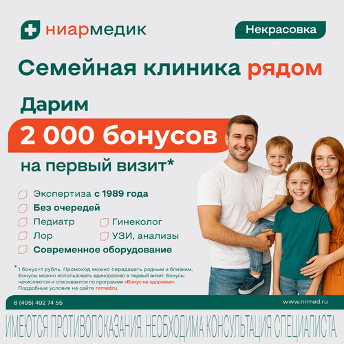 {"7tqo0":{"state":{"headerProps":{"form":{"action":"/medicine/clinic/niarmedik_122636042319","searchLabel":"Найти","logo":{"href":"//ya.ru","size":44}},"actions":{},"user":{"loggedIn":false,"ariaLabel":"Меню","plus":false,"birthdayHat":false,"child":false,"dialogProps":{"host":"yandex.ru","lang":"ru","project":"medicine","queryParams":{"exp_flags":"skin","preset":"oceania","utm_source":"medicine-app"},"retpath":"https%3A%2F%2Fyandex.ru%2Fmedicine%2Fclinic%2Fniarmedik_122636042319%3Fgeov_results%3D1%26lr%3D213%26oid%3Db%253A122636042319%26text%3D%25D0%25BA%25D0%25BB%25D0%25B8%25D0%25BD%25D0%25B8%25D0%25BA%25D0%25B0%26ncrnd%3D14400","tld":"ru","platform":"desktop"},"loginUrl":"https://passport.yandex.ru/auth?retpath=%2F&origin=serp_desktop_auth_new","loginText":"Войти"},"navigation":{"tabs":[{"id":"search","label":"Поиск","url":"//yandex.ru/search","params":{"text":"[$query]","site":"[$site]","source":"tabbar"}},{"id":"search_neuro","label":"Алиса","url":"//yandex.ru/search","params":{"text":"[$query]","site":"[$site]","source":"tabbar","promo":"force_neuro"}},{"id":"medicine","label":"Медицина","url":"//yandex.ru/medicine","params":{"lr":"[$lr]","from":"tabbar"},"target":"_self"},{"id":"images","label":"Картинки","url":"//yandex.ru/images/search","params":{"text":"[$query]","site":"[$site]","noreask":"[$noreask]","nomisspell":"[$nomisspell]","parent-reqid":"[$reqid]","from":"tabbar"}},{"id":"video","label":"Видео","url":"//yandex.ru/video/search","params":{"text":"[$query]","site":"[$site]","noreask":"[$noreask]","parent-reqid":"[$reqid]","from":"tabbar"}},{"id":"maps","label":"Карты","url":"//yandex.ru/maps","params":{"text":"[$query]","source":"serp_navig"}},{"id":"shopping","label":"Товары","url":"//yandex.ru/products","params":{"lr":"[$lr]","from":"tabbar"}},{"id":"finance","label":"Финансы","url":"//yandex.ru/finance","params":{"lr":"[$lr]","from":"tabbar"}},{"id":"realty","label":"Квартиры","url":"//yandex.ru/realty","params":{"lr":"[$lr]","from":"tabbar"}},{"id":"translate","label":"Переводчик","url":"//translate.yandex.ru","params":{"text":"[$query]","from":"tabbar"}},{"id":"all","label":"Все","url":"//yandex.ru/all","params":{"text":"[$query]","from":"tabbar"}}],"selectedTabId":"medicine"},"context":{"query":"Ниармедик","reqid":"1772945382596785-5869691719346130164-balancer-l7leveler-kubr-yp-sas-204-BAL","lr":"213","aliceDeeplink":"{\"text\":\"Ниармедик\"}","counters":{"type":"b","data":{"$header":"7tqoz000","logo":"7tqoz001","advanced-search":"7tqoz002","login":"7tqoz004","usermenu":"7tqoz005","market-cart":"7tqoz007","more-button":"7tqoz008","cbir":"7tqoz009","clear":"7tqoz00a","submit":"7tqoz00b","alice":"7tqoz00c","favorites":"7tqoz00d","$navigation":"7tqoz00e","item":"7tqoz01l","tab-search":"7tqoz012","tab-search_neuro":"7tqoz014","tab-medicine":"7tqoz016","tab-images":"7tqoz018","tab-video":"7tqoz01a","tab-maps":"7tqoz01c","tab-shopping":"7tqoz01e","tab-finance":"7tqoz01g","tab-realty":"7tqoz01i","tab-translate":"7tqoz01k","tab-all":"7tqoz01m"}}},"loggedIn":false,"mix":{"outerContainer":[]},"suggestUrl":"/medicine/suggest","suggestPlaceholder":"Найти врача, клинику, услугу","suggestParams":{},"utmSources":{"searchableItem":"upper_suggest_text","submitButton":"upper_search_button","enterKey":"upper_suggest_enter"}},"baobab":{"parentNode":{"context":{"genInfo":{"prefix":"7tqow01-0-1"},"ui":"desktop","service":"medicine","fast":{"name":"unisearch/medicine","subtype":"header"}}}}},"type":"unisearch/medicine","subtype":"header"},"7tqo1":{"state":{"headerProps":{"title":"Ниармедик","titleSize":"xl","url":"https://www.nrmed.ru/?utm_campaign=contacts-yandexmap&utm_content=nekrasovka&utm_medium=maps&utm_source=yandexmap-click","pathItems":[{"text":"nrmed.ru"}],"schedule":{"title":"До открытия 11 мин","days":{"mon":{"intervals":[{"from":"08:00","to":"21:00"}]},"tue":{"intervals":[{"from":"08:00","to":"21:00"}]},"wed":{"intervals":[{"from":"08:00","to":"21:00"}]},"thu":{"intervals":[{"from":"08:00","to":"21:00"}]},"fri":{"intervals":[{"from":"08:00","to":"21:00"}]},"sat":{"intervals":[{"from":"08:00","to":"21:00"}]},"sun":{"intervals":[{"from":"08:00","to":"21:00"}],"current":true}},"historySyncId":"org-122636042319-schedule-0"},"logo":"https://avatars.mds.yandex.net/get-altay/16480550/2a0000019a012c351be668fcb2628d6601ce/XS","siteMetrika":{"type":"reach-goal","metrikaCounterId":"59047672","objectId":"122636042319","objectTitle":"Ниармедик","event":"site","goal":"site"},"blueTitle":true,"reviewsCount":1046,"reviewsViewerId":"one-org-modal-card-reviews-122636042319","profileOrgLink":"https://yandex.ru/profile/122636042319?lang=ru","rating":{"value":4.9,"base":5,"decimalSeparator":","},"category":"Медцентр, клиника","verifiedTld":"ru"},"tabsProps":{"initialTab":"about","aboutTabProps":{"id":"about","title":"Главное","aboutContentProps":{"galleryProps":{"oid":"122636042319","map":{"height":158,"width":158,"assetId":"ua_34_4094170387","label":{"name":"Филиалы","count":13}},"height":158,"isInsidePopup":false,"context":{"type":0,"params":{"tabName":"photo"}},"intent":{"type":2,"params":{"oid":"122636042319","tabName":"photo","subtype":"company"}},"photoTiles":{"items":[{"image":"https://avatars.mds.yandex.net/get-altay/16634215/2a00000199b8b96fdcd462e8acadc6ea7573/L","tagId":"All","name":"Все фото","count":"54","width":158,"height":158,"logNodeAttrs":{"action":"open_photo"}},{"image":"https://avatars.mds.yandex.net/get-altay/16465668/2a00000199b8b388b90798e58d5aad796204/L","tagId":"Exterior","name":"Снаружи","count":"5","width":237,"height":158,"logNodeAttrs":{"action":"open_photo"}},{"image":"https://avatars.mds.yandex.net/get-altay/16134335/2a00000199b8b6d8686fb756219331a5a082/L","tagId":"Interior","name":"Внутри","count":"15","width":237,"height":158,"logNodeAttrs":{"action":"open_photo