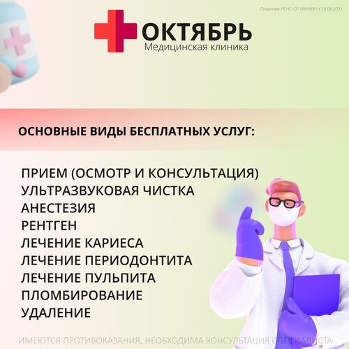 {"dzua0":{"state":{"headerProps":{"form":{"action":"/medicine/clinic/oktyabr_117511780509","searchLabel":"Найти","logo":{"href":"//ya.ru","size":44}},"actions":{},"user":{"loggedIn":false,"ariaLabel":"Меню","plus":false,"birthdayHat":false,"child":false,"dialogProps":{"host":"yandex.ru","lang":"ru","project":"medicine","queryParams":{"exp_flags":"skin","preset":"oceania","utm_source":"medicine-app"},"retpath":"https%3A%2F%2Fyandex.ru%2Fmedicine%2Fclinic%2Foktyabr_117511780509%3Fgeov_results%3D1%26lr%3D213%26oid%3Db%253A117511780509%26text%3D%25D0%25BA%25D0%25BB%25D0%25B8%25D0%25BD%25D0%25B8%25D0%25BA%25D0%25B0%26ncrnd%3D66093","tld":"ru","platform":"desktop"},"loginUrl":"https://passport.yandex.ru/auth?retpath=%2F&origin=serp_desktop_auth_new","loginText":"Войти"},"navigation":{"tabs":[{"id":"search","label":"Поиск","url":"//yandex.ru/search","params":{"text":"[$query]","site":"[$site]","source":"tabbar"}},{"id":"search_neuro","label":"Алиса","url":"//yandex.ru/search","params":{"text":"[$query]","site":"[$site]","source":"tabbar","promo":"force_neuro"}},{"id":"medicine","label":"Медицина","url":"//yandex.ru/medicine","params":{"lr":"[$lr]","from":"tabbar"},"target":"_self"},{"id":"images","label":"Картинки","url":"//yandex.ru/images/search","params":{"text":"[$query]","site":"[$site]","noreask":"[$noreask]","nomisspell":"[$nomisspell]","parent-reqid":"[$reqid]","from":"tabbar"}},{"id":"video","label":"Видео","url":"//yandex.ru/video/search","params":{"text":"[$query]","site":"[$site]","noreask":"[$noreask]","parent-reqid":"[$reqid]","from":"tabbar"}},{"id":"maps","label":"Карты","url":"//yandex.ru/maps","params":{"text":"[$query]","source":"serp_navig"}},{"id":"shopping","label":"Товары","url":"//yandex.ru/products","params":{"lr":"[$lr]","from":"tabbar"}},{"id":"finance","label":"Финансы","url":"//yandex.ru/finance","params":{"lr":"[$lr]","from":"tabbar"}},{"id":"realty","label":"Квартиры","url":"//yandex.ru/realty","params":{"lr":"[$lr]","from":"tabbar"}},{"id":"translate","label":"Переводчик","url":"//translate.yandex.ru","params":{"text":"[$query]","from":"tabbar"}},{"id":"all","label":"Все","url":"//yandex.ru/all","params":{"text":"[$query]","from":"tabbar"}}],"selectedTabId":"medicine"},"context":{"query":"Октябрь","reqid":"1762619759652755-1670663048582166795-balancer-l7leveler-kubr-yp-klg-70-BAL","lr":"213","aliceDeeplink":"{\"text\":\"Октябрь\"}","counters":{"type":"b","data":{"$header":"dzuaz000","logo":"dzuaz001","advanced-search":"dzuaz002","login":"dzuaz004","usermenu":"dzuaz005","market-cart":"dzuaz007","more-button":"dzuaz008","cbir":"dzuaz009","clear":"dzuaz00a","submit":"dzuaz00b","alice":"dzuaz00c","$navigation":"dzuaz00d","item":"dzuaz01k","tab-search":"dzuaz011","tab-search_neuro":"dzuaz013","tab-medicine":"dzuaz015","tab-images":"dzuaz017","tab-video":"dzuaz019","tab-maps":"dzuaz01b","tab-shopping":"dzuaz01d","tab-finance":"dzuaz01f","tab-realty":"dzuaz01h","tab-translate":"dzuaz01j","tab-all":"dzuaz01l"}}},"loggedIn":false,"mix":{"outerContainer":[]},"suggestUrl":"/medicine/suggest","suggestPlaceholder":"Найти врача, клинику, услугу","suggestParams":{}},"baobab":{"parentNode":{"context":{"genInfo":{"prefix":"dzuaw01-0-1"},"ui":"desktop","service":"medicine","fast":{"name":"unisearch/medicine","subtype":"header"}}}}},"type":"unisearch/medicine","subtype":"header"},"dzua1":{"state":{"headerProps":{"title":"Октябрь","titleSize":"xl","url":"https://ооо-октябрь.рф/","pathItems":[{"text":"ооо-октябрь.рф"}],"schedule":{"title":"До закрытия 25 мин","days":{"mon":{"intervals":[{"from":"09:00","to":"20:00"}]},"tue":{},"wed":{"intervals":[{"from":"09:00","to":"20:00"}]},"thu":{"intervals":[{"from":"09:00","to":"20:00"}]},"fri":{"intervals":[{"from":"09:00","to":"20:00"}]},"sat":{"intervals":[{"from":"09:00","to":"20:00"}],"current":true},"sun":{"intervals":[{"from":"09:00","to":"17:00"}]}},"historySyncId":"org-117511780509-schedule-0"},"logo":"https://avatars.mds.yandex.net/get-altay/15457874/2a0000019585b5abd4ecb16bb45fbb3e58b9/XS","siteMetrika":{"type":"reach-goal","counterId":"100238926","objectId":"117511780509","objectTitle":"Октябрь","event":"site","goal":"site"},"blueTitle":true,"reviewsCount":306,"reviewsViewerId":"one-org-modal-card-reviews-117511780509","profileOrgLink":"https://yandex.ru/profile/117511780509?lang=ru","rating":{"value":4.9,"base":5,"decimalSeparator":","},"category":"Стоматологическая клиника","verifiedTld":"ru"},"tabsProps":{"initialTab":"about","aboutTabProps":{"id":"about","title":"Главное","aboutContentProps":{"galleryProps":{"oid":"117511780509","map":{"height":158,"width":158,"assetId":"ua_34_657182305","label":{"name":"Филиалы","count":1}},"height":158,"isInsidePopup":false,"context":{"type":0,"params":{"tabName":"photo"}},"intent":{"type":2,"params":{"oid":"117511780509","tabName":"photo","subtype":"company"}},"photoTiles":{"items":[{"image":"https://avatars.mds.yandex.net/get-altay/16487000/2a00000197dadb76e305777ae58d97d53407/L","tagId":"All","name":"Все фото","count":"16","width":130,"height":158,"logNodeAttrs":{"action":"open_photo"}},{"image":"https://avatars.mds.yandex.net/get-altay/4612894/2a0000017bf00c051d0d13339cdef957c8b1/L","tagId":"Exterior","name":"Снаружи","count":"4","width":211,"height":158,"logNodeAttrs":{"action":"open_photo"}},{"image":"https://avatars.mds.yandex.net/get-altay/16444693/2a00000197dadbf386146c10d1c91bdcba9f/L","tagId":"Interior","name":"Внутри","count":"4","width":130,"height":158,"logNodeAttrs":{"action":"open_photo"}},{"image":"https://avatars.mds.yandex.net/get-altay/11400839/2a0000018d839bff9545d0eadd8e19722fc6/L","tagId":"Devices","name":"Оборудование","count":"3","width":158,"height":158,"logNodeAttrs":{"action":"open_photo"}},{"image":"https://avatars.mds.yandex.