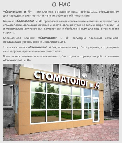 {"60wu0":{"state":{"headerProps":{"form":{"action":"/medicine/clinic/stomatolog-i-ya_115278028220","searchLabel":"Найти","logo":{"href":"//ya.ru","size":44}},"actions":{},"user":{"loggedIn":false,"ariaLabel":"Меню","plus":false,"birthdayHat":false,"child":false,"dialogProps":{"host":"yandex.ru","lang":"ru","project":"medicine","queryParams":{"exp_flags":"skin","preset":"oceania","utm_source":"medicine-app"},"retpath":"https%3A%2F%2Fyandex.ru%2Fmedicine%2Fclinic%2Fstomatolog-i-ya_115278028220%3Fgeov_results%3D1%26lr%3D213%26oid%3Db%253A115278028220%26text%3D%25D0%25BA%25D0%25BB%25D0%25B8%25D0%25BD%25D0%25B8%25D0%25BA%25D0%25B0%26ncrnd%3D6080","tld":"ru","platform":"desktop"},"loginUrl":"https://passport.yandex.ru/auth?retpath=%2F&origin=serp_desktop_auth_new","loginText":"Войти"},"navigation":{"tabs":[{"id":"search","label":"Поиск","url":"//yandex.ru/search","params":{"text":"[$query]","site":"[$site]","source":"tabbar"}},{"id":"search_neuro","label":"Алиса","url":"//yandex.ru/search","params":{"text":"[$query]","site":"[$site]","source":"tabbar","promo":"force_neuro"}},{"id":"medicine","label":"Медицина","url":"//yandex.ru/medicine","params":{"lr":"[$lr]","from":"tabbar"},"target":"_self"},{"id":"images","label":"Картинки","url":"//yandex.ru/images/search","params":{"text":"[$query]","site":"[$site]","noreask":"[$noreask]","nomisspell":"[$nomisspell]","parent-reqid":"[$reqid]","from":"tabbar"}},{"id":"video","label":"Видео","url":"//yandex.ru/video/search","params":{"text":"[$query]","site":"[$site]","noreask":"[$noreask]","parent-reqid":"[$reqid]","from":"tabbar"}},{"id":"maps","label":"Карты","url":"//yandex.ru/maps","params":{"text":"[$query]","source":"serp_navig"}},{"id":"shopping","label":"Товары","url":"//yandex.ru/products","params":{"lr":"[$lr]","from":"tabbar"}},{"id":"finance","label":"Финансы","url":"//yandex.ru/finance","params":{"lr":"[$lr]","from":"tabbar"}},{"id":"realty","label":"Квартиры","url":"//yandex.ru/realty","params":{"lr":"[$lr]","from":"tabbar"}},{"id":"translate","label":"Переводчик","url":"//translate.yandex.ru","params":{"text":"[$query]","from":"tabbar"}},{"id":"all","label":"Все","url":"//yandex.ru/all","params":{"text":"[$query]","from":"tabbar"}}],"selectedTabId":"medicine"},"context":{"query":"Стоматолог и Я","reqid":"1769115384381397-4931444804292394440-balancer-l7leveler-kubr-yp-vla-107-BAL","lr":"213","aliceDeeplink":"{\"text\":\"Стоматолог и Я\"}","counters":{"type":"b","data":{"$header":"60wuz000","logo":"60wuz001","advanced-search":"60wuz002","login":"60wuz004","usermenu":"60wuz005","market-cart":"60wuz007","more-button":"60wuz008","cbir":"60wuz009","clear":"60wuz00a","submit":"60wuz00b","alice":"60wuz00c","$navigation":"60wuz00d","item":"60wuz01k","tab-search":"60wuz011","tab-search_neuro":"60wuz013","tab-medicine":"60wuz015","tab-images":"60wuz017","tab-video":"60wuz019","tab-maps":"60wuz01b","tab-shopping":"60wuz01d","tab-finance":"60wuz01f","tab-realty":"60wuz01h","tab-translate":"60wuz01j","tab-all":"60wuz01l"}}},"loggedIn":false,"mix":{"outerContainer":[]},"suggestUrl":"/medicine/suggest","suggestPlaceholder":"Найти врача, клинику, услугу","suggestParams":{}},"baobab":{"parentNode":{"context":{"genInfo":{"prefix":"60wuw01-0-1"},"ui":"desktop","service":"medicine","fast":{"name":"unisearch/medicine","subtype":"header"}}}}},"type":"unisearch/medicine","subtype":"header"},"60wu1":{"state":{"headerProps":{"title":"Стоматолог и Я","titleSize":"xl","schedule":{"title":"Закрыто до завтра","days":{"mon":{"intervals":[{"from":"08:00","to":"20:00"}]},"tue":{"intervals":[{"from":"08:00","to":"20:00"}]},"wed":{"intervals":[{"from":"08:00","to":"20:00"}]},"thu":{"intervals":[{"from":"08:00","to":"20:00"}],"current":true},"fri":{"intervals":[{"from":"08:00","to":"20:00"}]},"sat":{"intervals":[{"from":"08:00","to":"20:00"}]},"sun":{"intervals":[{"from":"08:00","to":"20:00"}]}},"historySyncId":"org-115278028220-schedule-0"},"siteMetrika":{"type":"reach-goal","counterId":"64157494","objectId":"115278028220","objectTitle":"Стоматолог и Я","event":"site","goal":"site"},"blueTitle":true,"reviewsCount":59,"reviewsViewerId":"one-org-modal-card-reviews-115278028220","profileOrgLink":"https://yandex.ru/profile/115278028220?lang=ru","rating":{"value":4.5,"base":5,"decimalSeparator":","},"category":"Стоматологическая клиника"},"tabsProps":{"initialTab":"about","aboutTabProps":{"id":"about","title":"Главное","aboutContentProps":{"galleryProps":{"oid":"115278028220","map":{"height":158,"width":158,"assetId":"ua_34_655230989","url":"https://yandex.ru/profile/115278028220?lang=ru&no-distribution=1&view-state=mini&source=wizbiz_new_map_single"},"height":158,"isInsidePopup":false,"context":{"type":0,"params":{"tabName":"photo"}},"intent":{"type":2,"params":{"oid":"115278028220","tabName":"photo","subtype":"company"}},"photoTiles":{"items":[{"image":"https://avatars.mds.yandex.net/get-altay/374295/2a0000015b8661b38f40d88cc12ae799cc80/L","tagId":"All","name":"Все фото","count":"9","width":237,"height":158,"logNodeAttrs":{"action":"open_photo"}},{"image":"https://avatars.mds.yandex.net/get-altay/247136/2a0000015b8661cc993323578c938ee5a8fd/L","tagId":"Exterior","name":"Снаружи","count":"2","width":130,"height":158,"logNodeAttrs":{"action":"open_photo"}},{"image":"https://avatars.mds.yandex.net/get-altay/8133749/2a000001871cdf8621d49e98d3460c1c0f97/L","tagId":"Interior","name":"Внутри","count":"1","width":281,"height":158,"logNodeAttrs":{"action":"open_photo"}},{"image":"https://avatars.mds.yandex.net/get-altay/8128793/2a000001871dfba08dd3320be085ae8cf188/L","tagId":"Enter","name":"Вход","count":"2","width":135,"height":158,"logNodeAttrs":{"action":"open_photo"}},{"image":"https://avatars.mds.yandex.net/get-altay/1903890/2a000001870f460b58ec4afe9e4df5f9fdcb