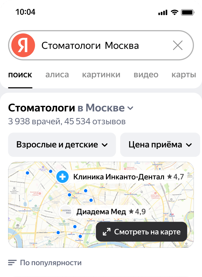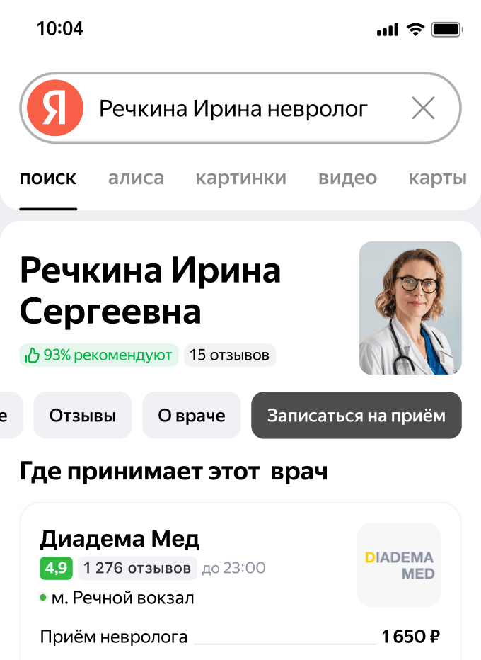 Такой ответ помогает пользователю увидеть самую важную информацию про докторов и выбрать специалиста. Список формируется с учетом квалификации врача, локации, цен, отзывов и других факторов.