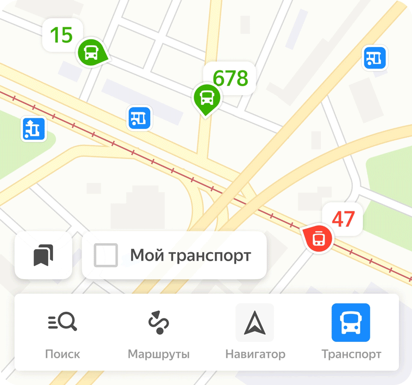 в закладках. Тогда по клику на «Мой транспорт» сразу увидите,
