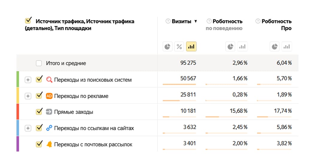 В интерфейсе Метрики на больших запросах выборка данных может автоматически уменьшаться. Метрика Про позволяет управлять уровнем выборки, когда это необходимо, и получать данные без семплирования.