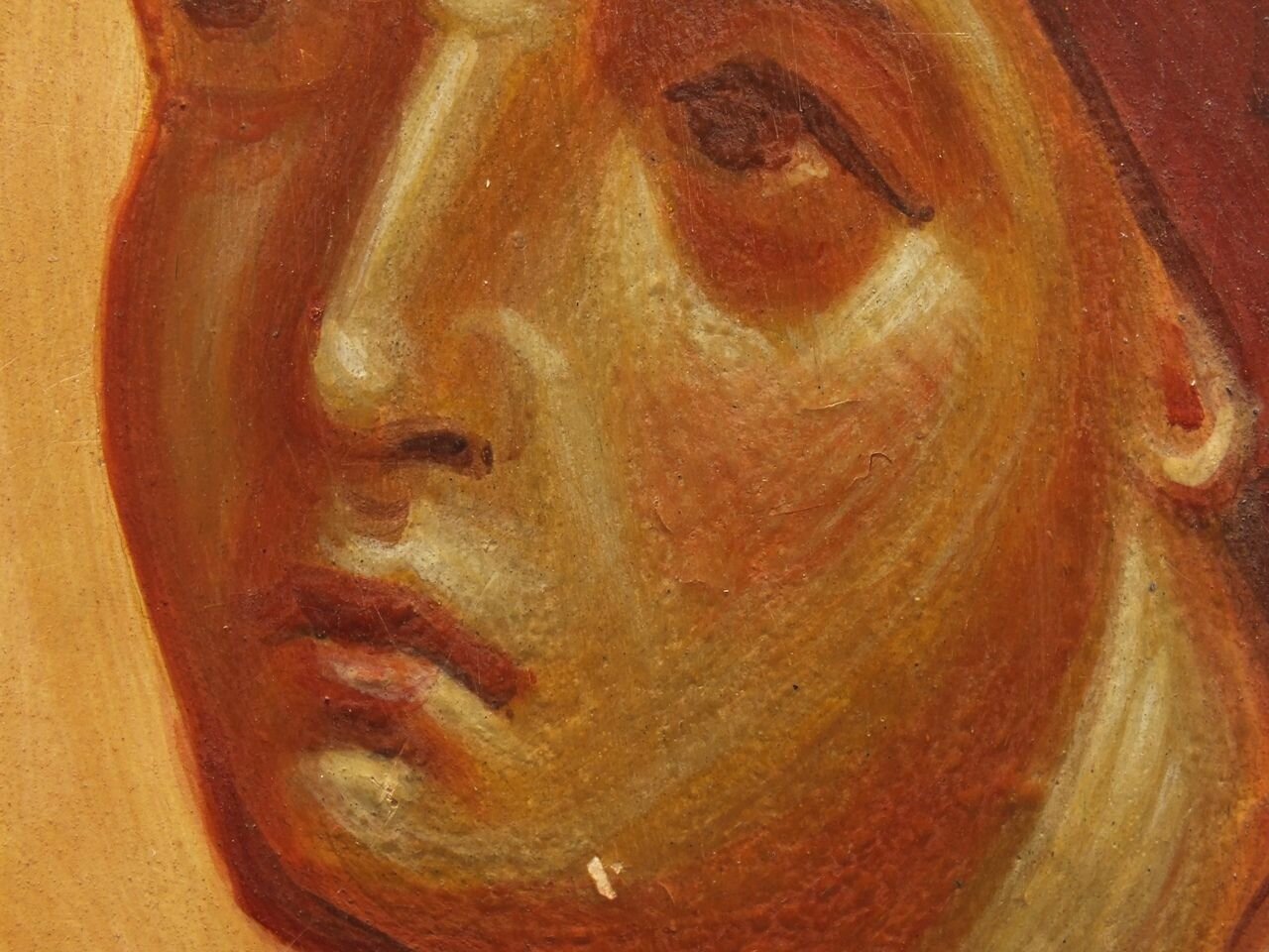 Курс рисунка и живописи я прошел у мухинских художников. Не стоит загребать изобразительное искусство под одно мерило Академ рисунка. Если внимательно изучать образцы живописи средневековых европейских мастеров, можно обнаружить, что далеко не везде соблюдается строгая анатомия и "фоторисование", многие детали умышленно деформированы. Так например в античной традиции умышленно один глаз отодвигают в сторону, чтобы создавалось впечатление, что изображённый портрет смотрит на тебя, где бы ты не стоял, относительно его. Но я не отрицаю, что у меня не получилось передать этот прием.