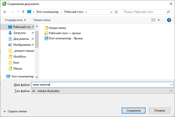 Заходим в Файл/Сохранить как... и внизу в выпадающем списке расширений выбираем AI - Adobe Illustrator —