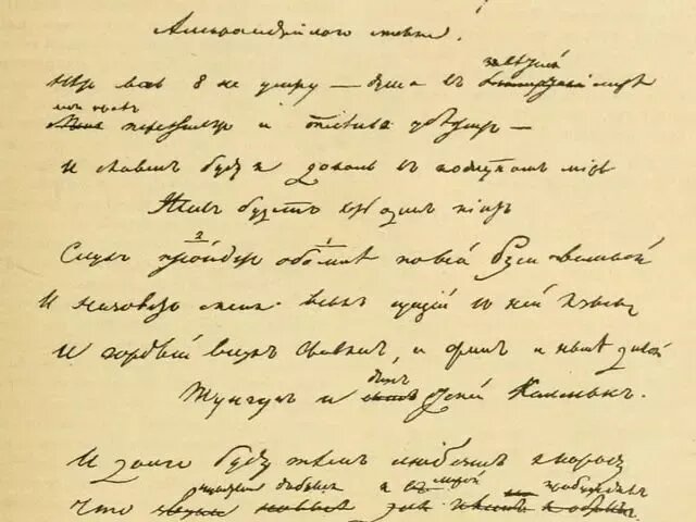 Как можно заметить, почерк Александра Сергеевича, когда он пишет торопливо, очень похож на почерк других гениев в том смысле, что его очень трудно разобрать (как говорится, писала курица лапой). И это характерно для многих гениев мира с тех пор, как появилась скоропись, позволившая писать целые слова, не отрывая перо от бумаги для написания каждой отдельной буквы. Кстати, наличие скорописи - один из признаков развитого языка.