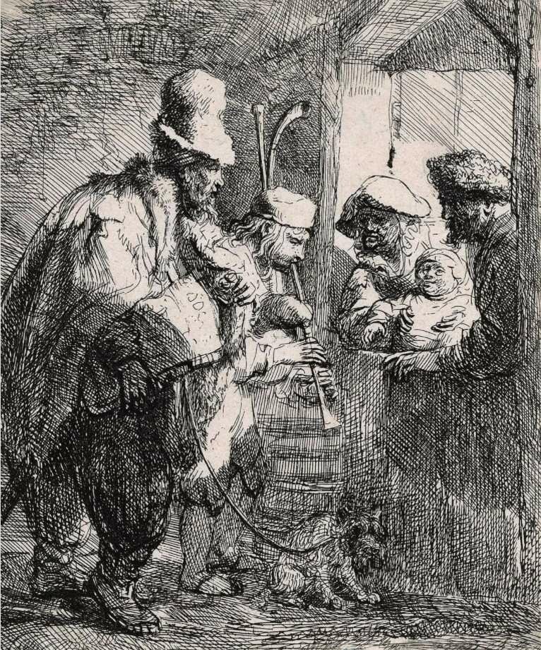 Мой любимый рисунок (эскиз) Рембрандта ван Рейна «Уличные музыканты» (Straatmuzikanten, ок. 1635, Rijksmuseum).