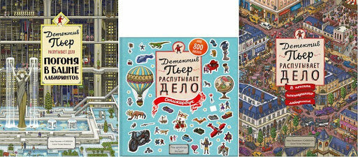 5. Серия «Детектив Пьер» («Детектив Пьер распутывает дело. В поисках похищенного лабиринта», «Погоня в Башне лабиринтов», «Сокровище Воздушного замка») Тихиро Маруяма, Хиро Камигаки. Издательство «Манн, Иванов и Фербер»