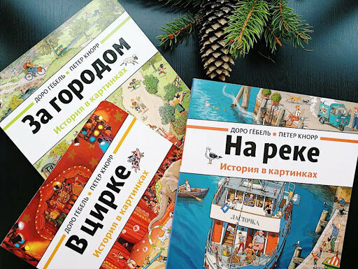 2. Серия «История в картинках» («Однажды в городе», «За городом», «На реке», «Соседи») Доро Гёбель, Петер Кнорр. Издательство «Мелик-Пашаев»