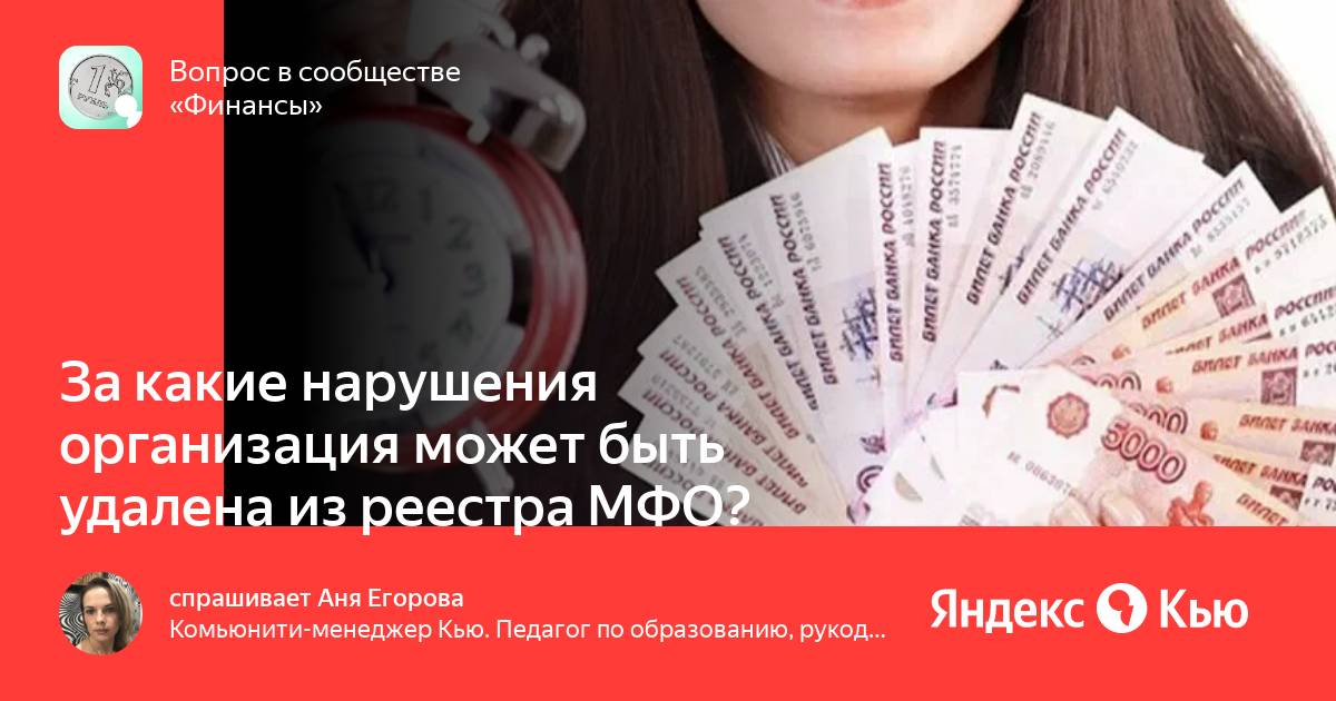 «За какие нарушения организация может быть удалена из реестра МФО? ?» — Яндекс Кью