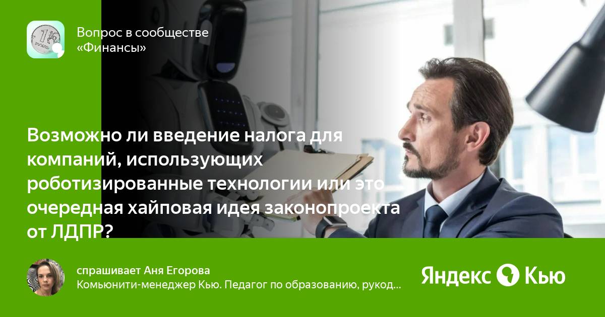 «Возможно ли введение налога для компаний, использующих роботизированные технологии или это очередная хайповая идея законопроекта от ЛДПР?» — Яндекс Кью